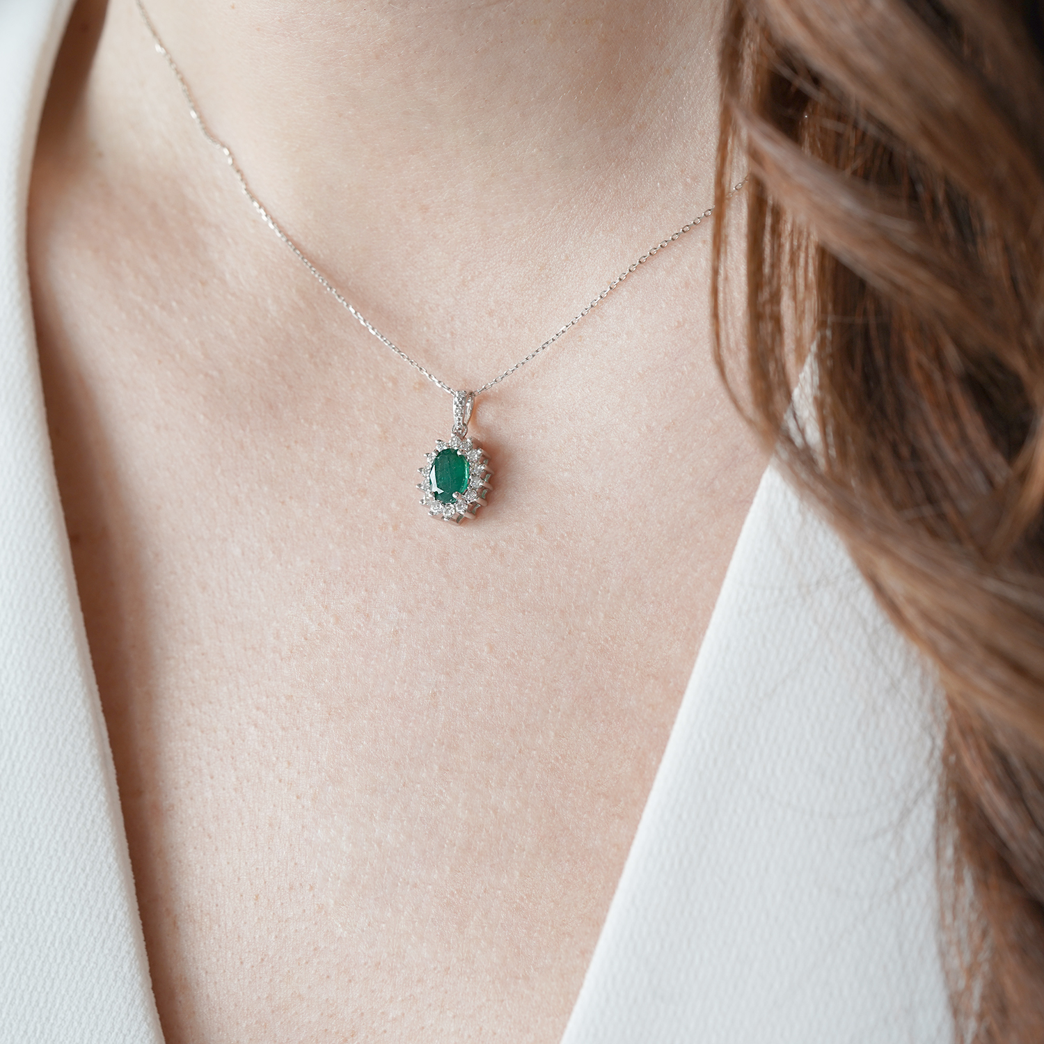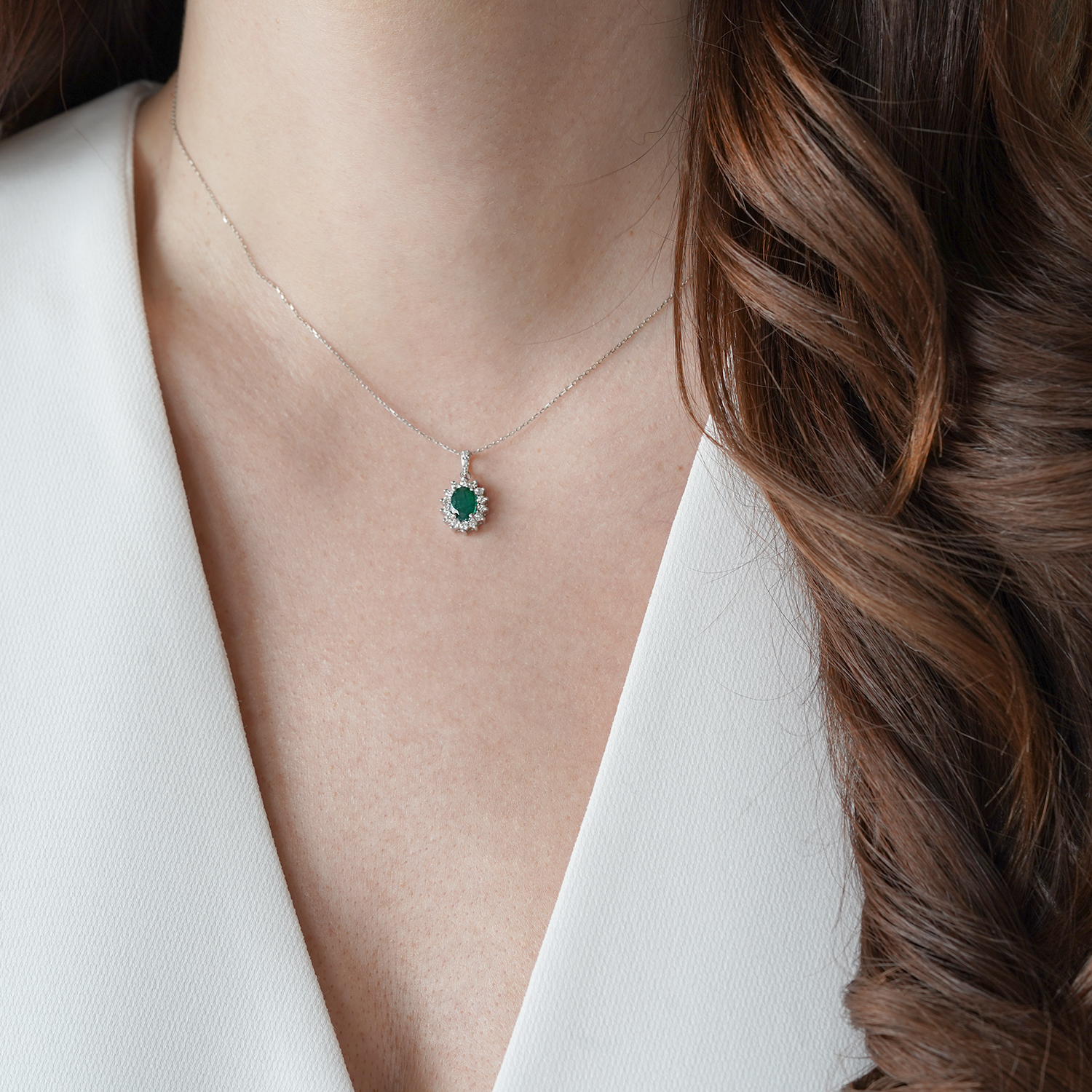 Pandantiv din aur alb de 18K cu Smarald natural certificat IGS