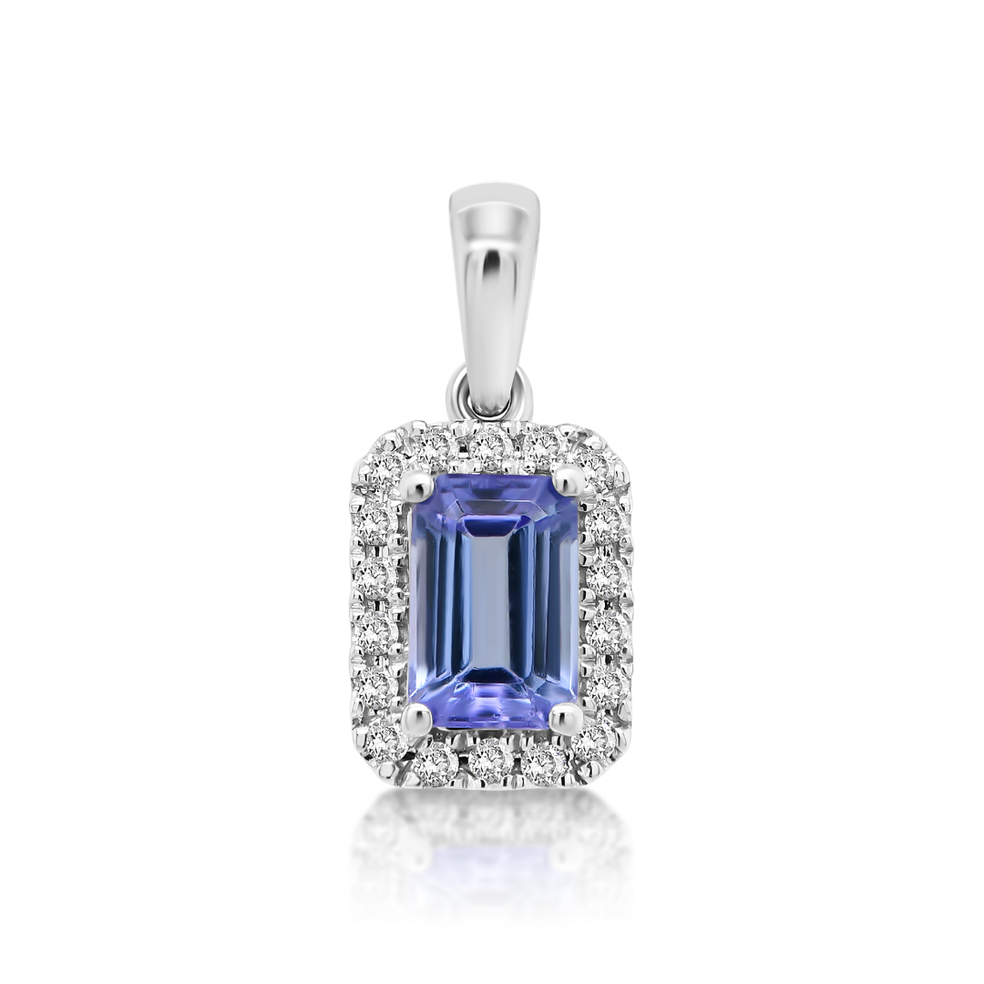 Pandantiv din aur alb de 18K cu Tanzanit și Diamante naturale