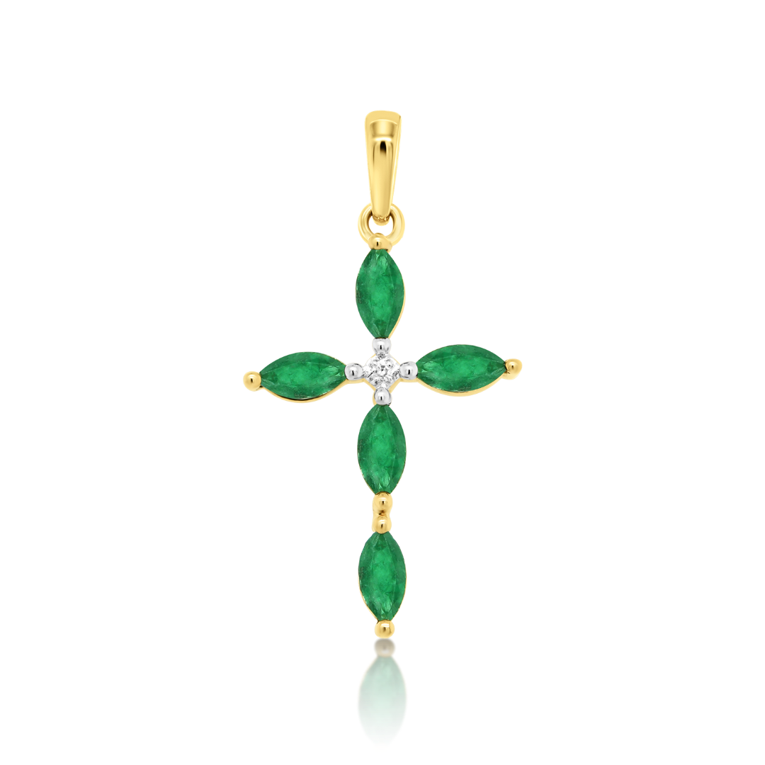 Pandantiv din aur galben de 18K, cu Diamant și Smaralde naturale