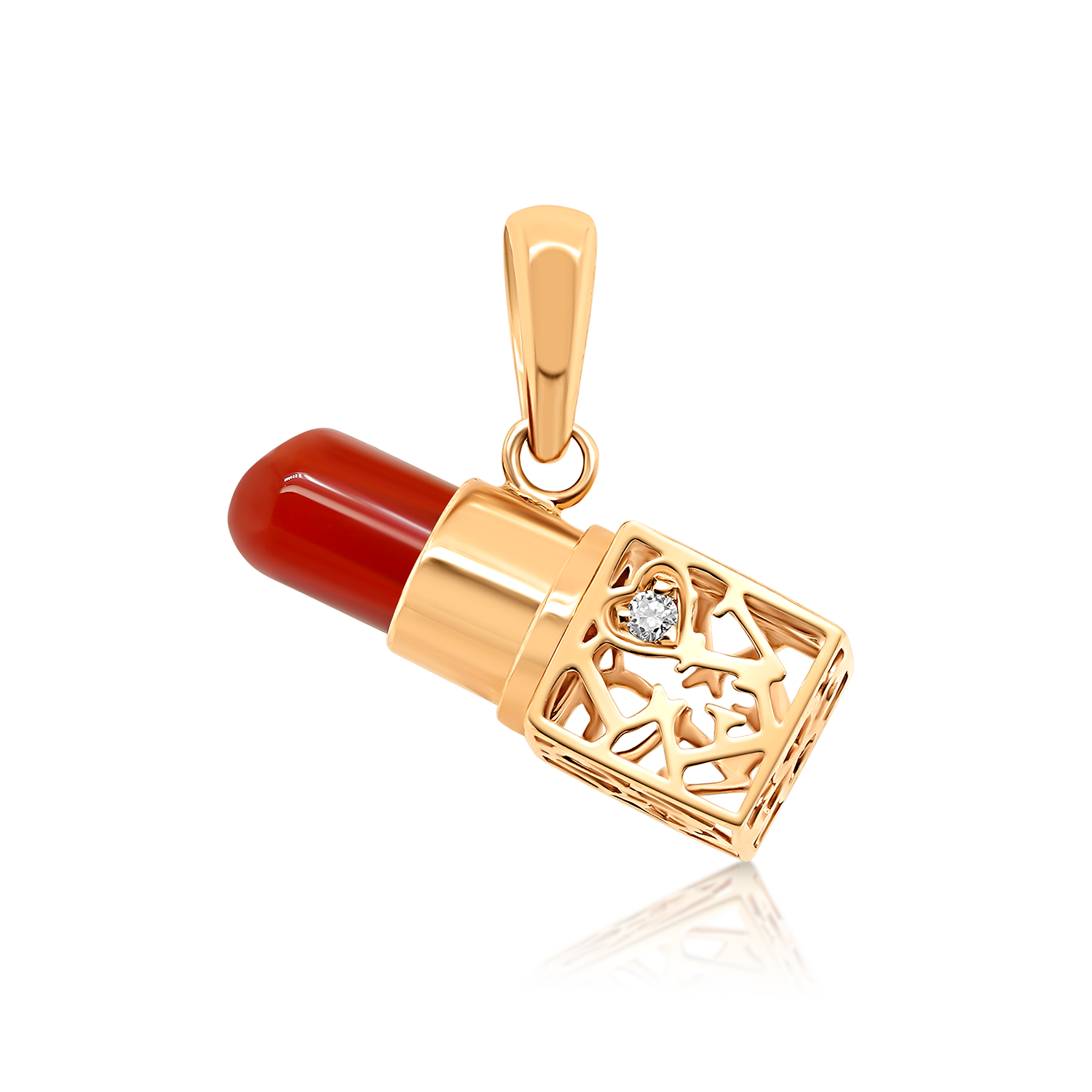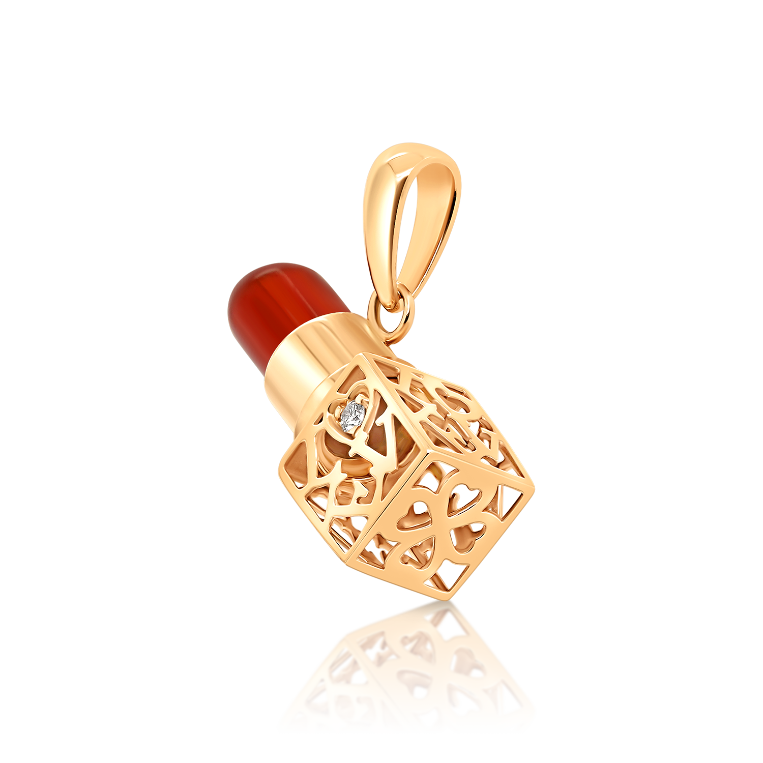 Pandantiv ruj din aur roz de 18K cu Agat roșu și Diamant natural