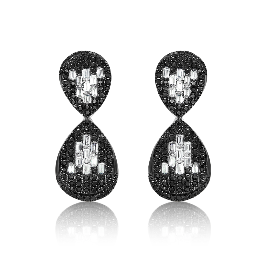 Cercei din aur alb de 18K cu Diamante naturale negre și incolore.