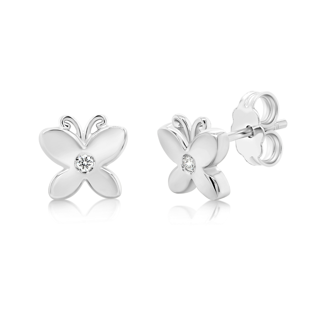 Cercei din aur alb de 18K cu două Diamante naturale Round Brilliant de 0.02ct.