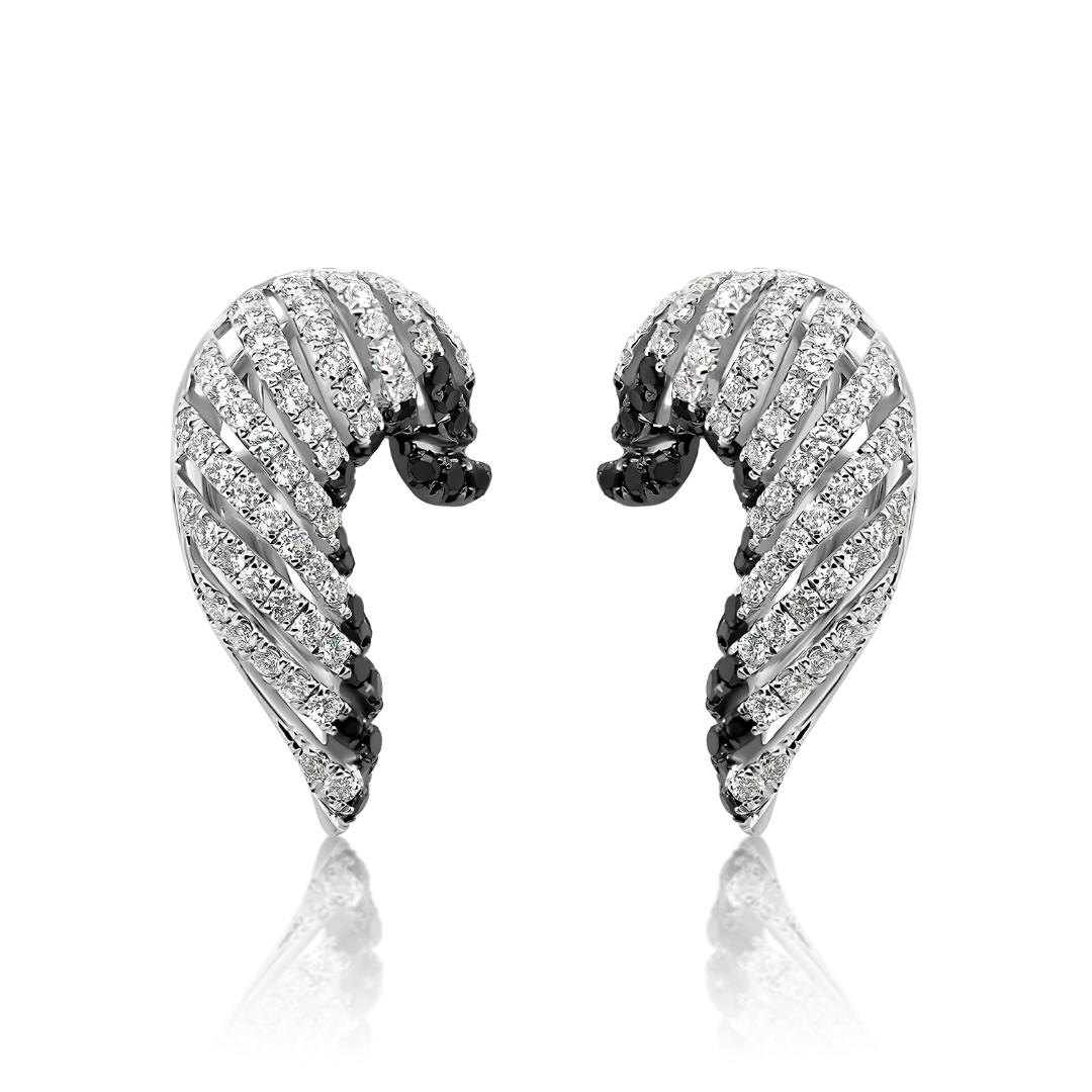 Cercei din aur alb de 18K încrustați cu 58 de Diamante negre de 0.38ct și 114 Diamante incolore de 0.68ct.