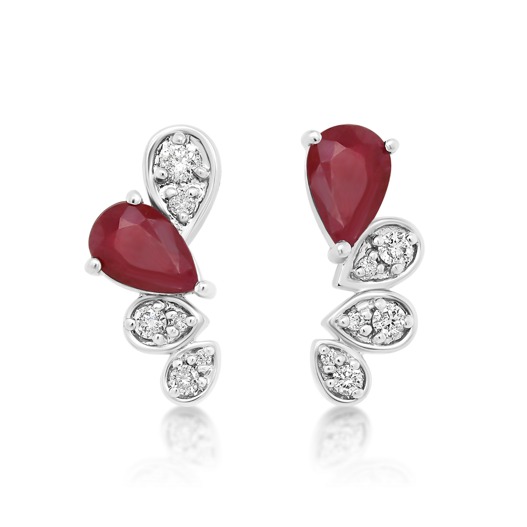 Cercei din aur alb de 18K, încrustați cu două Rubine de 0.96ct și Diamante Brilliant cut de 0.16ct.