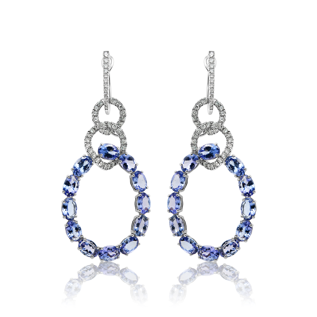 Cercei din aur alb de 18K, încrustați cu 24 de Tanzanite de 10.4ct și Diamante Round Brilliant.