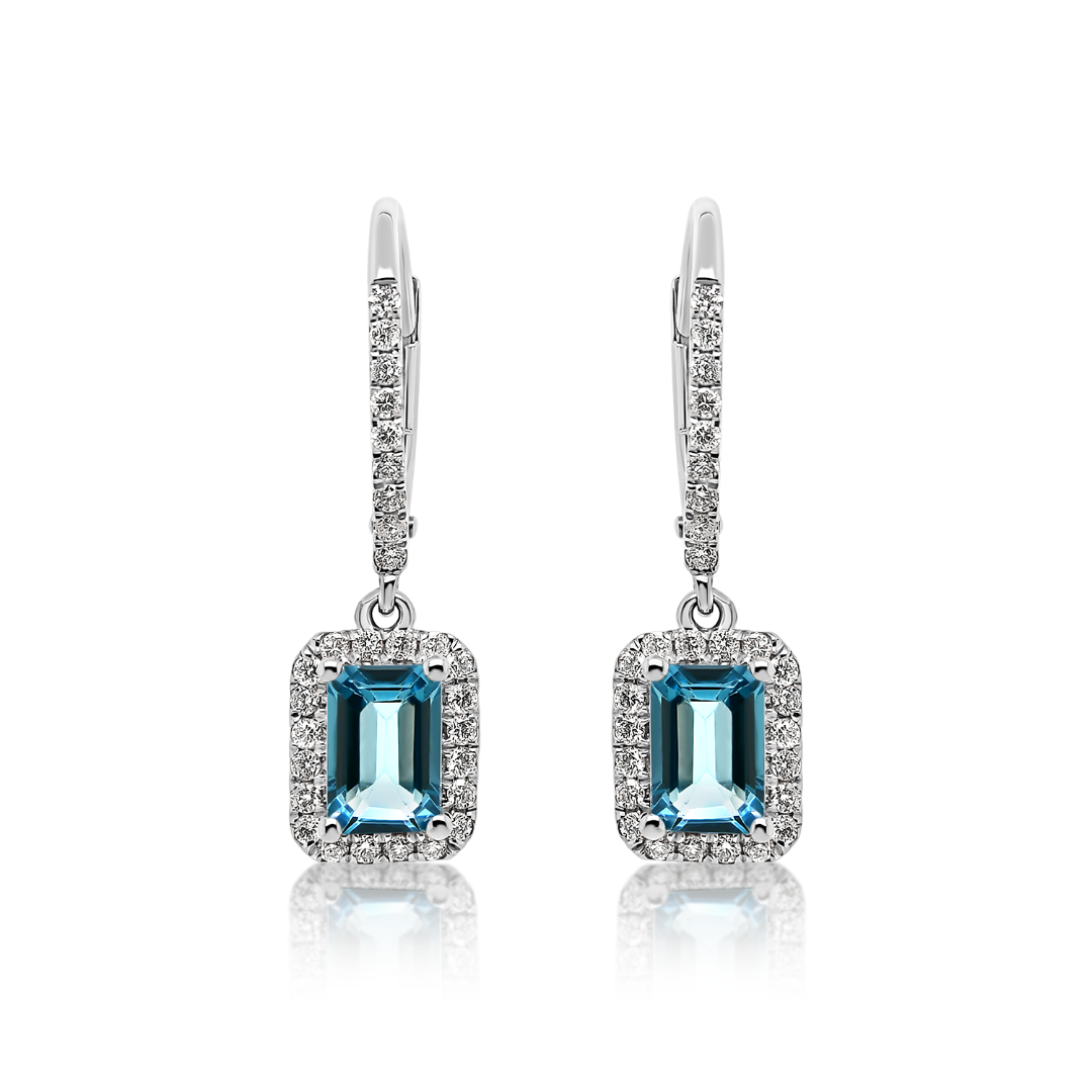 Cercei din aur alb de 18K, cu London Blue Topaz de 1.28ct și 58 de Diamante Round Brilliant de 0.336ct.