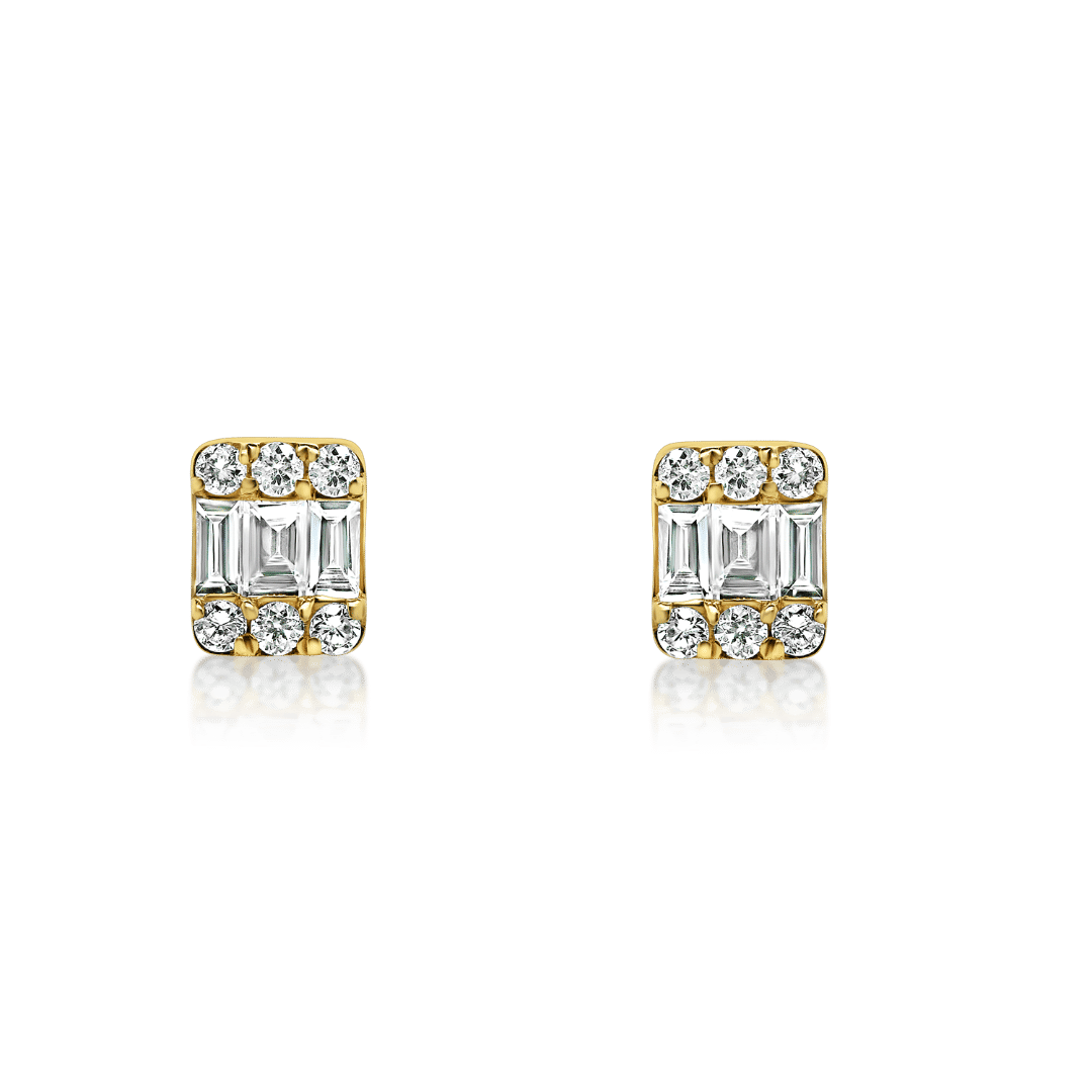 Cercei din aur galben de 18K încrustați cu Diamante naturale de 0.15ct.
