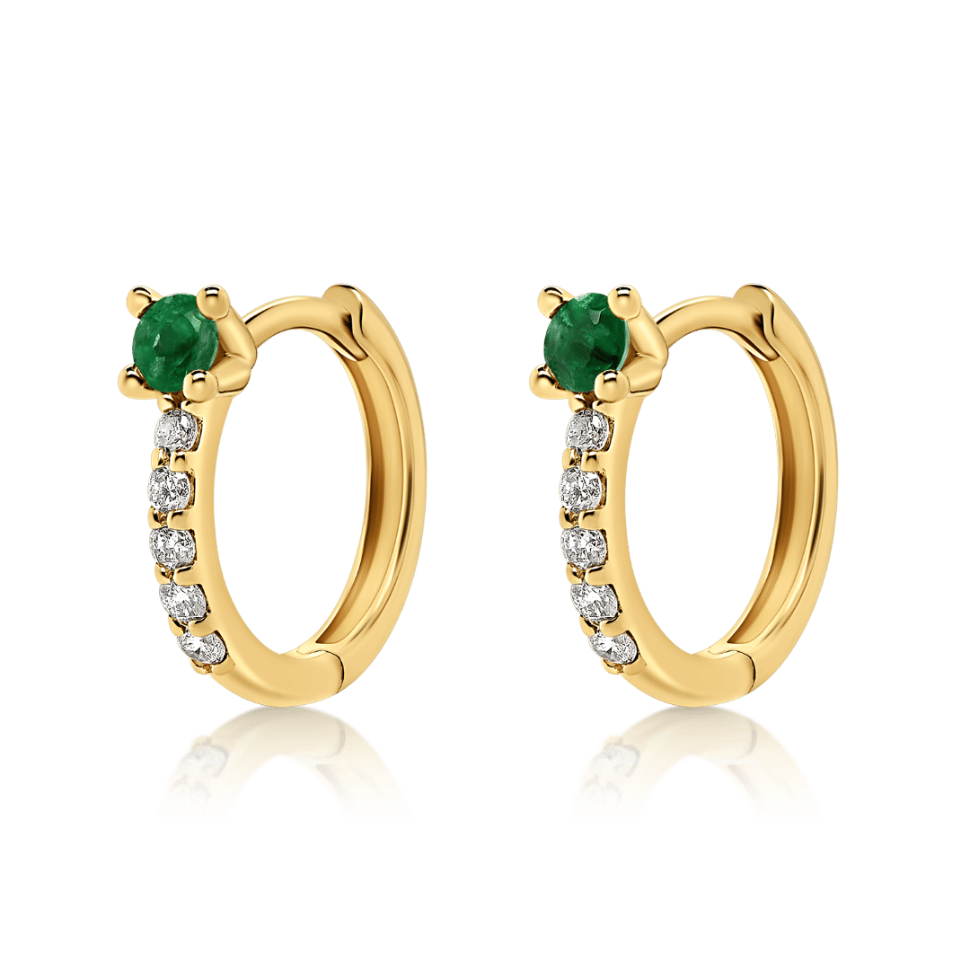 Cercei pentru copii din aur galben de 14K, încrustați cu Smaralde și Diamante naturale.
