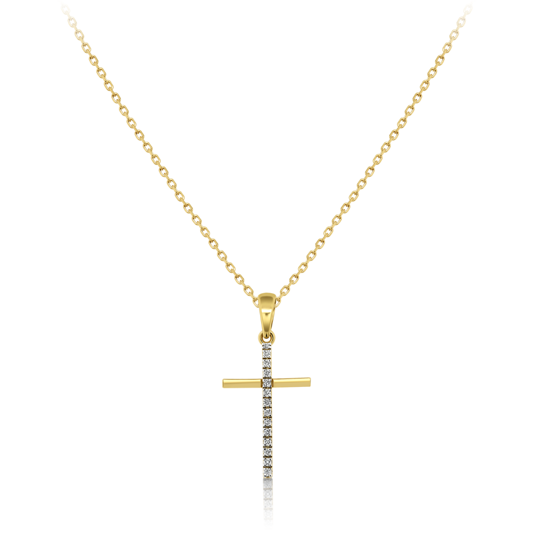 Lanț cu pandantiv cruce din aur galben de 14K cu Diamante naturale Round Brilliant.