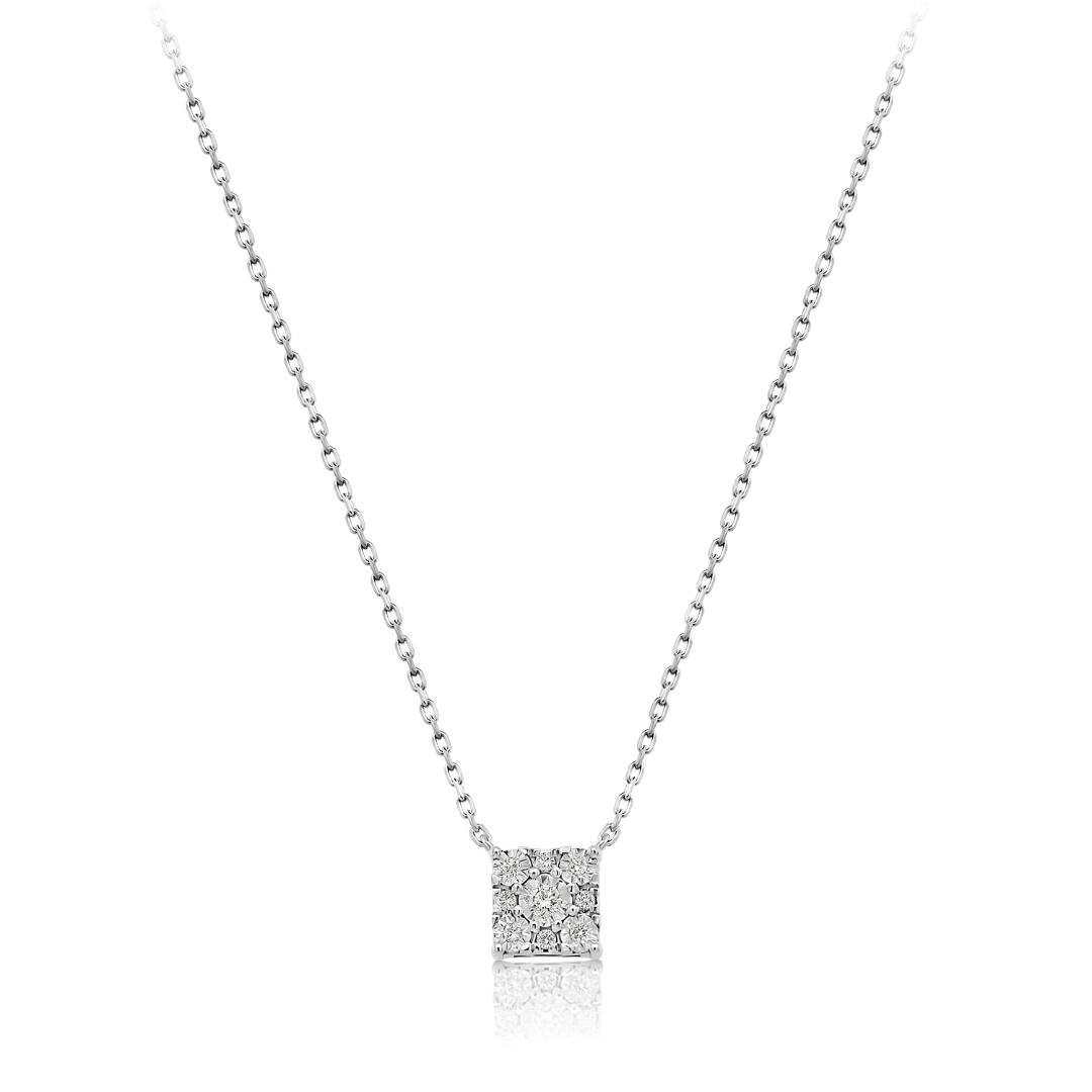 Lanț cu pandantiv din aur alb de 14K cu 9 Diamante naturale de 0.060ct.