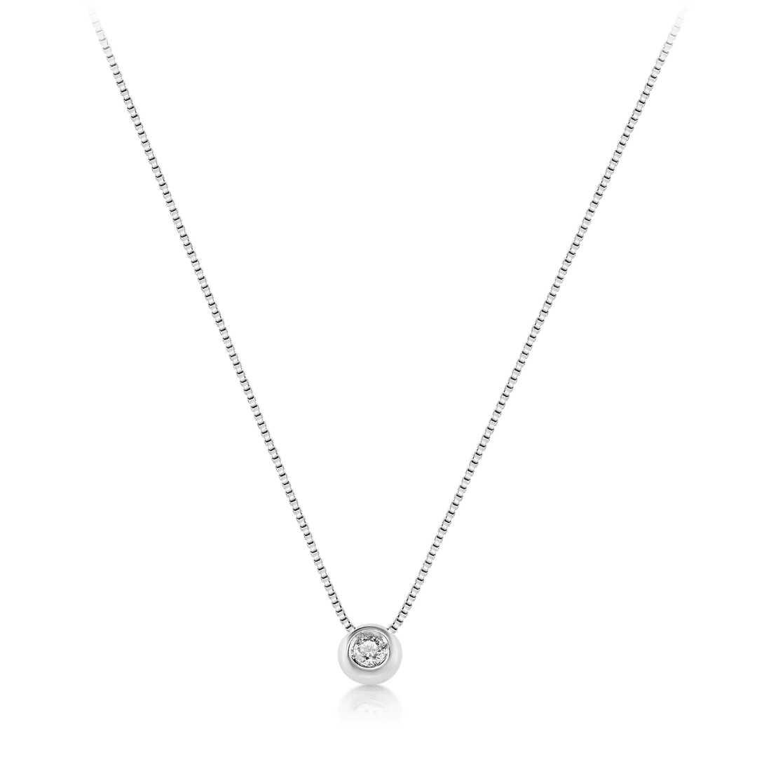 Lanț din aur alb de 18K și pandantiv cu un Diamant Round Brilliant.