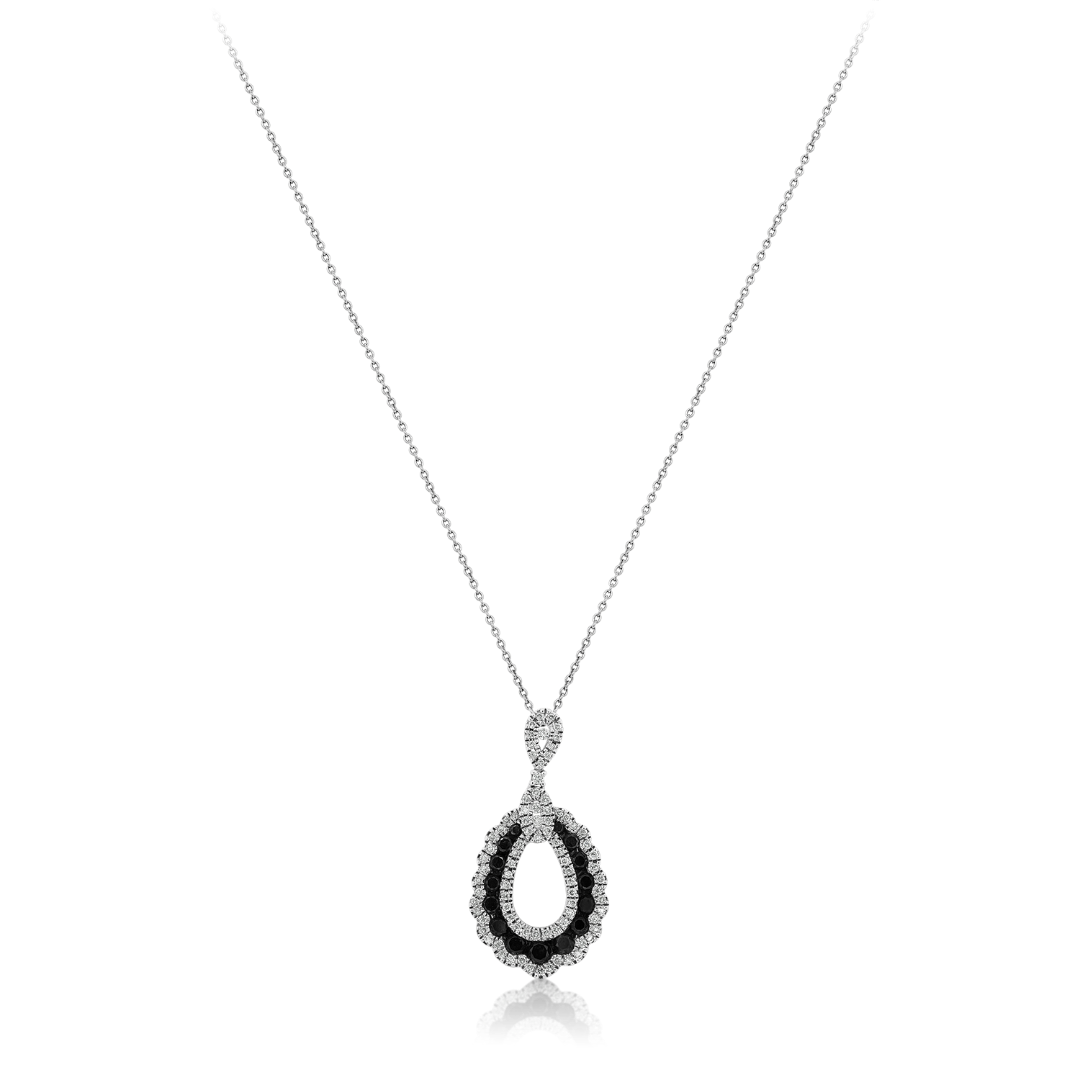 Lanț din aur alb de 18K și pandantiv cu Diamante naturale negre și incolore.
