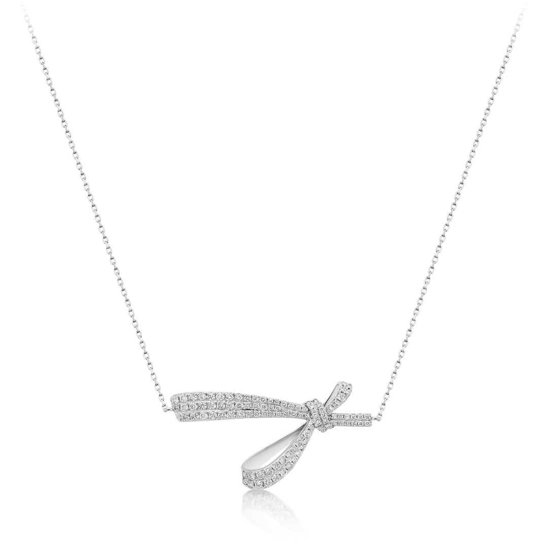 Lanț din aur alb de 18K și pandantiv cu Diamante Round Brilliant naturale.