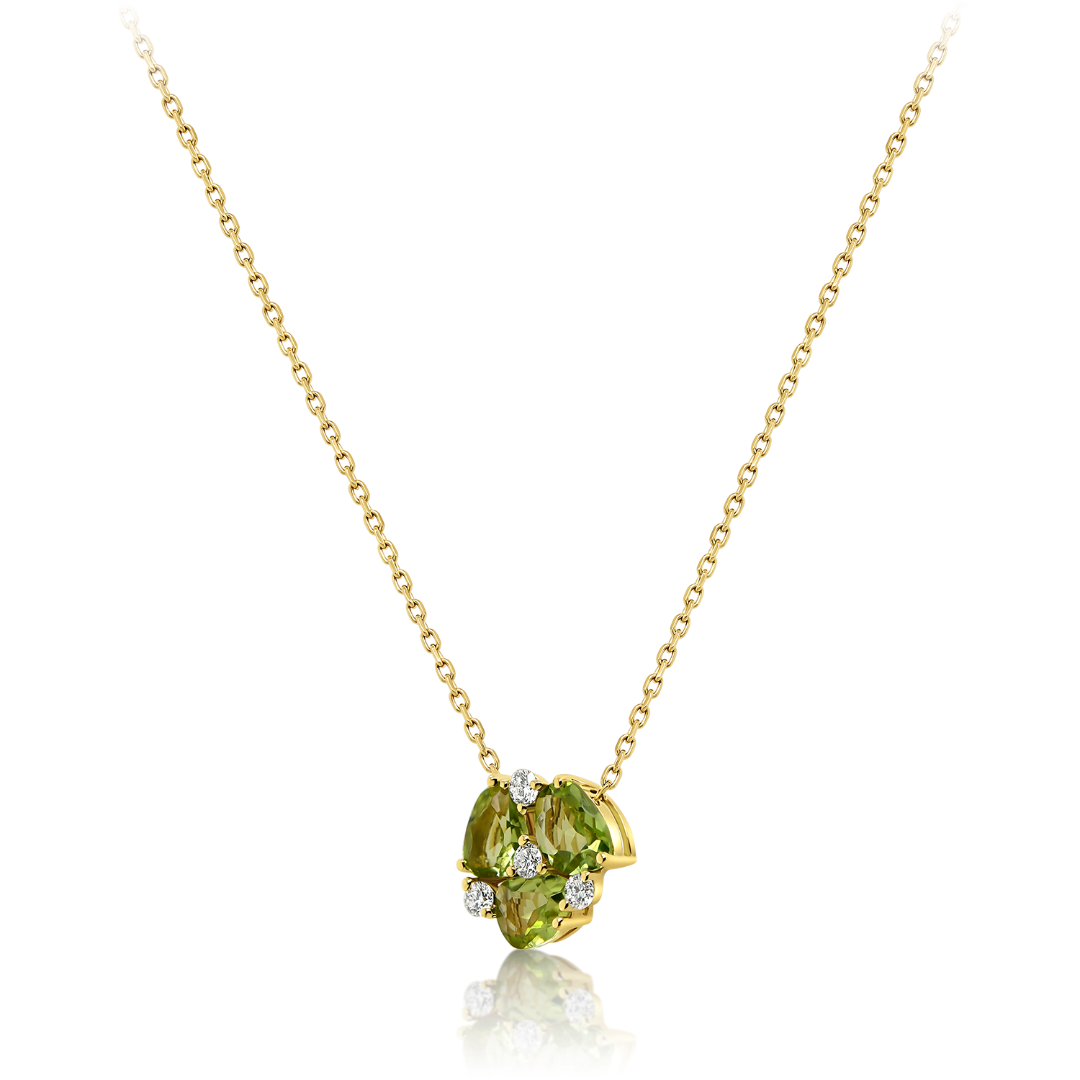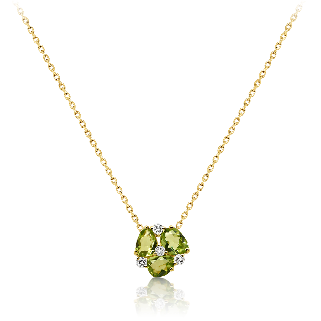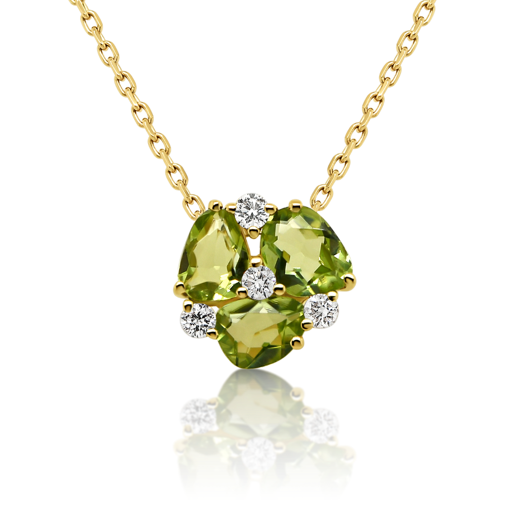 Lanț din aur galben de 18K și pandantiv cu Peridot verde de 0.68ct și 4 Diamante Round Brilliant de 0.072ct.