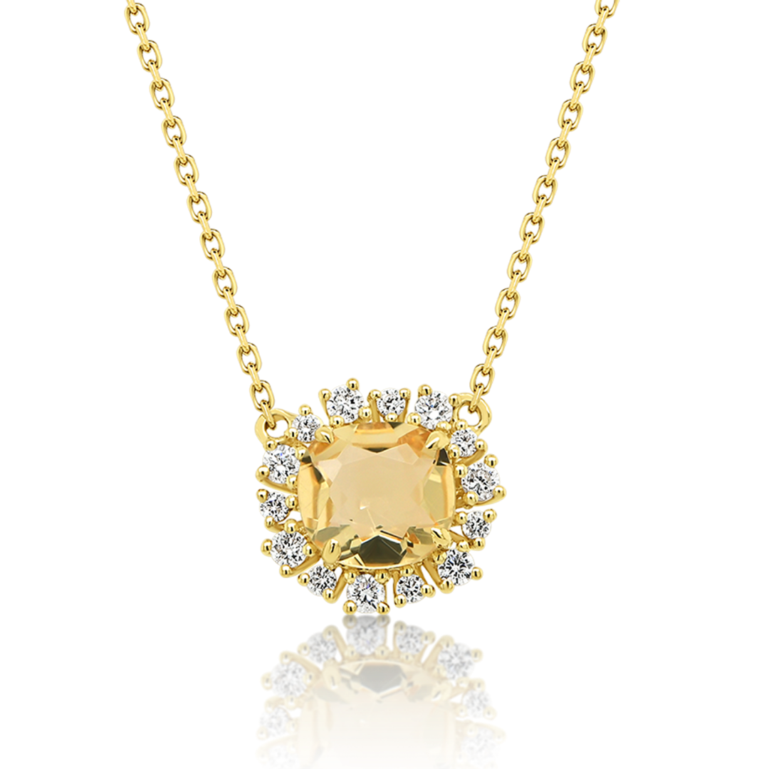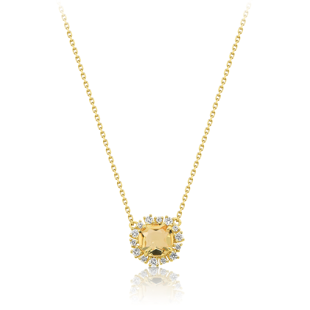 Lanț din aur galben de 18K și pandantiv cu un Citrin de 0.683ct și 14 Diamante Round Brilliant de 0.146ct.