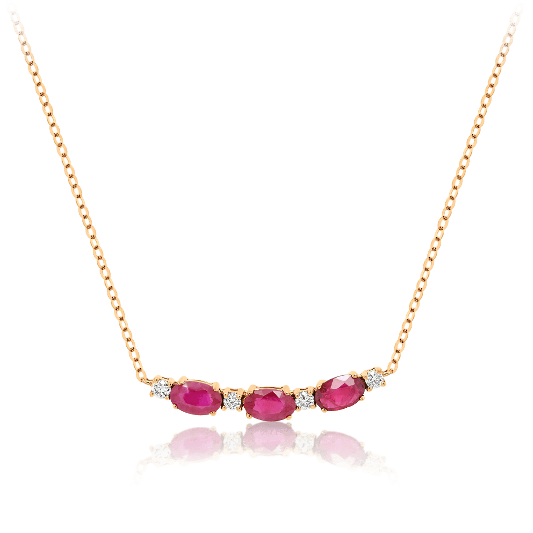 Lanț din aur roz de 18K și pandantiv cu Rubine și Diamante naturale.