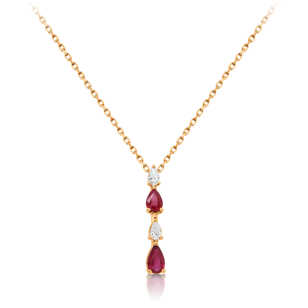 Lanț din aur roz de 18K și pandantiv cu două Rubine și două Diamante naturale.