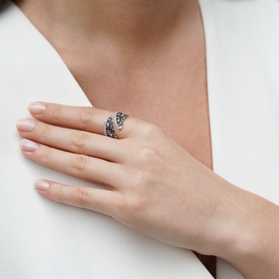 Inel din aur alb de 14K cu Diamante fancy naturale.