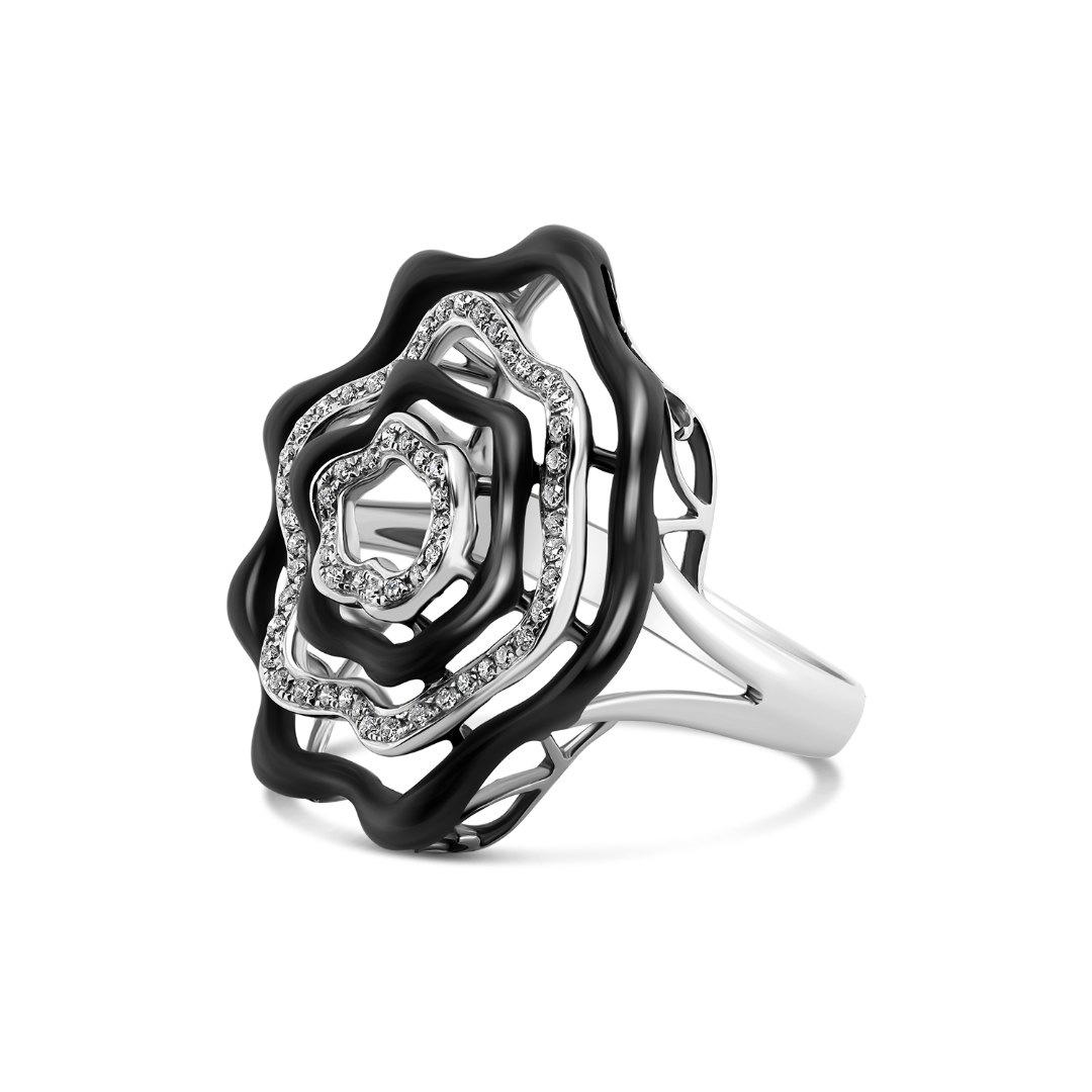 Inel din aur alb de 18K cu Diamante naturale și email negru.