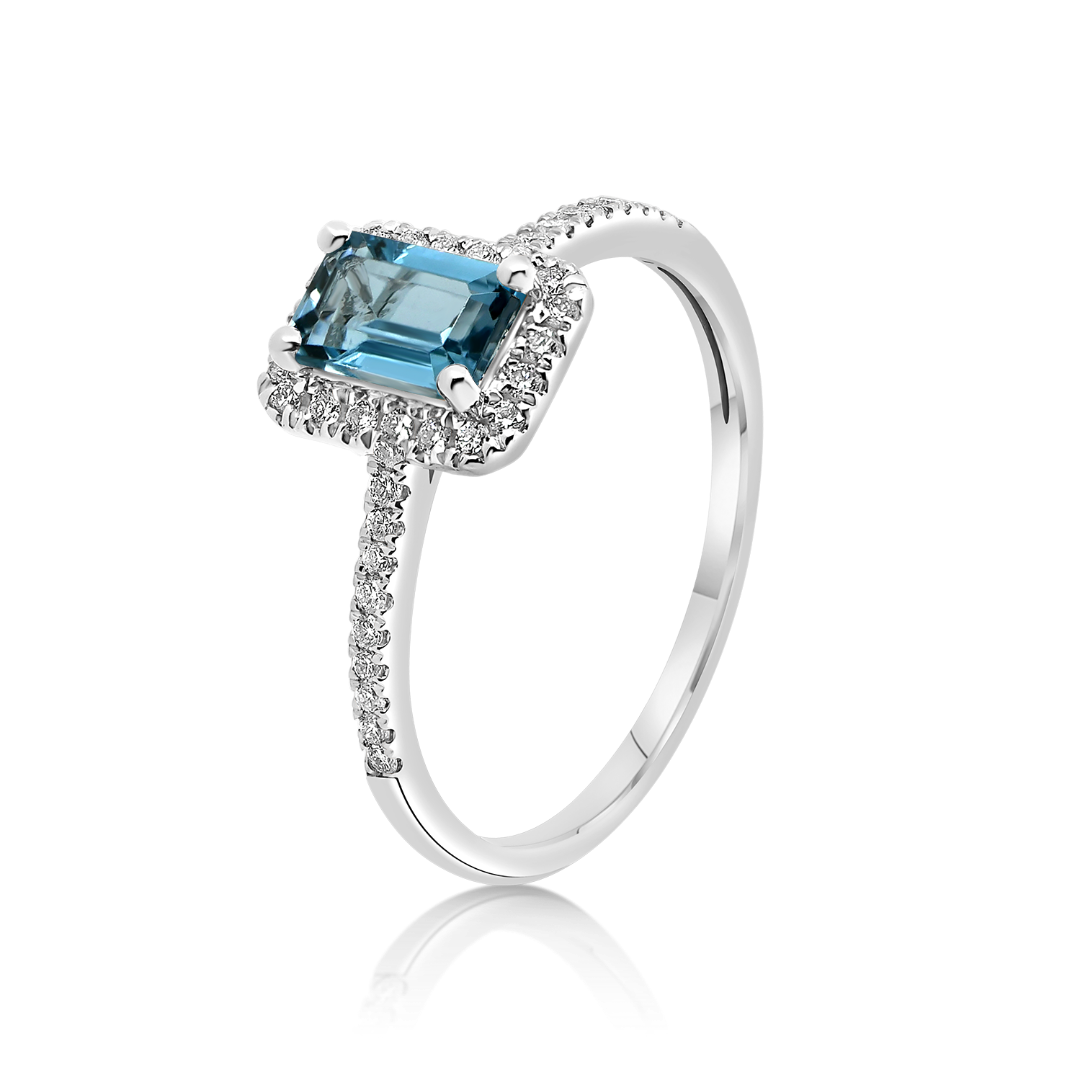 Inel din aur alb de 18K, cu un London Blue Topaz și 40 de Diamante Round Brilliant.