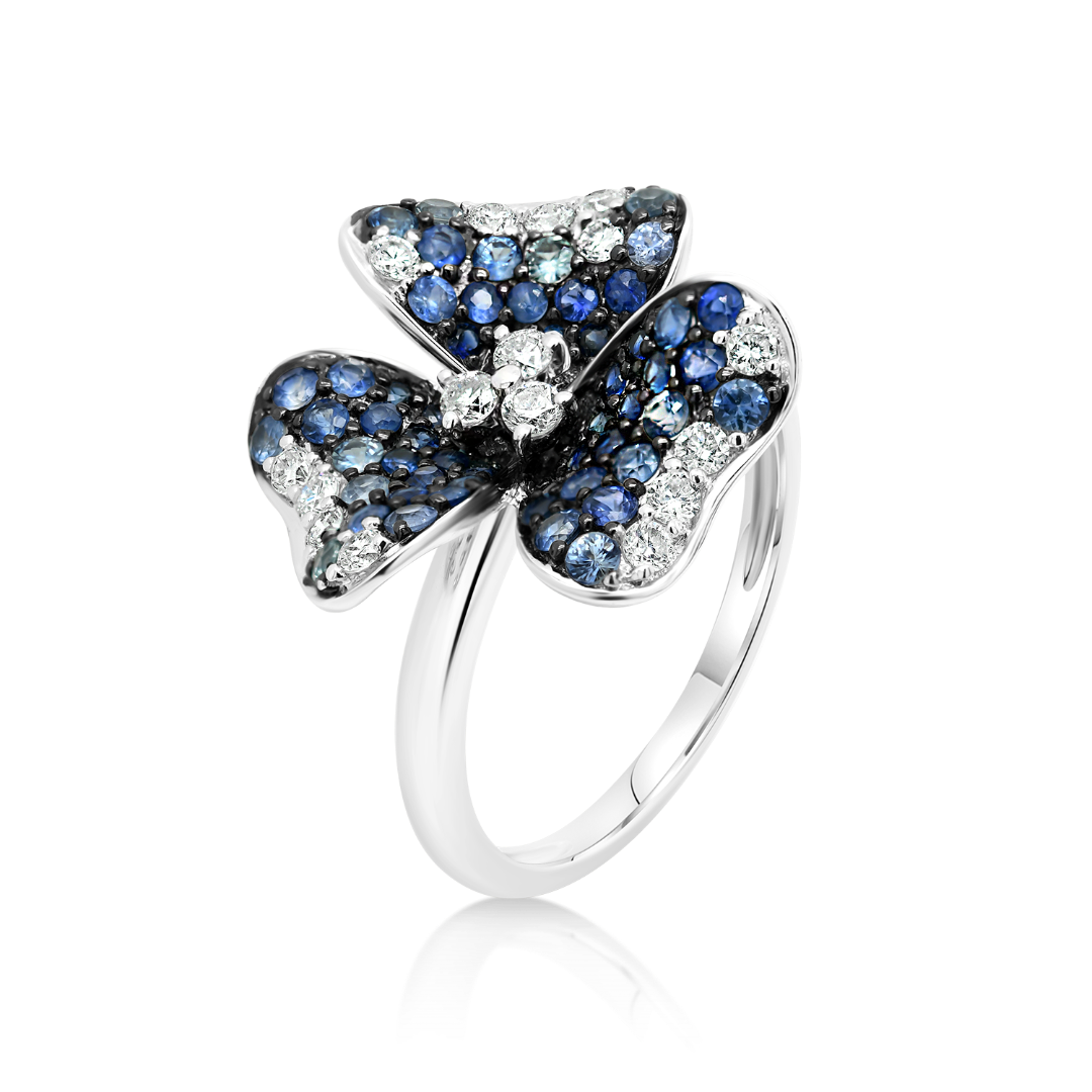 Inel din aur alb de 18K, încrustat cu 55 de Safire de 0.759ct și 16 Diamante Brilliant cut de 0.27ct.
