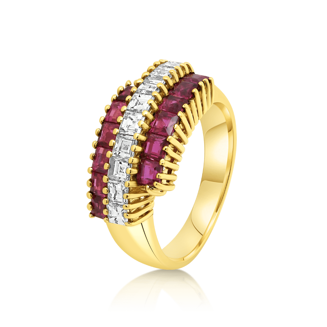 Inel din aur galben de 18K, încrustat cu Rubine de 0.90ct și Diamante de 0.70ct.