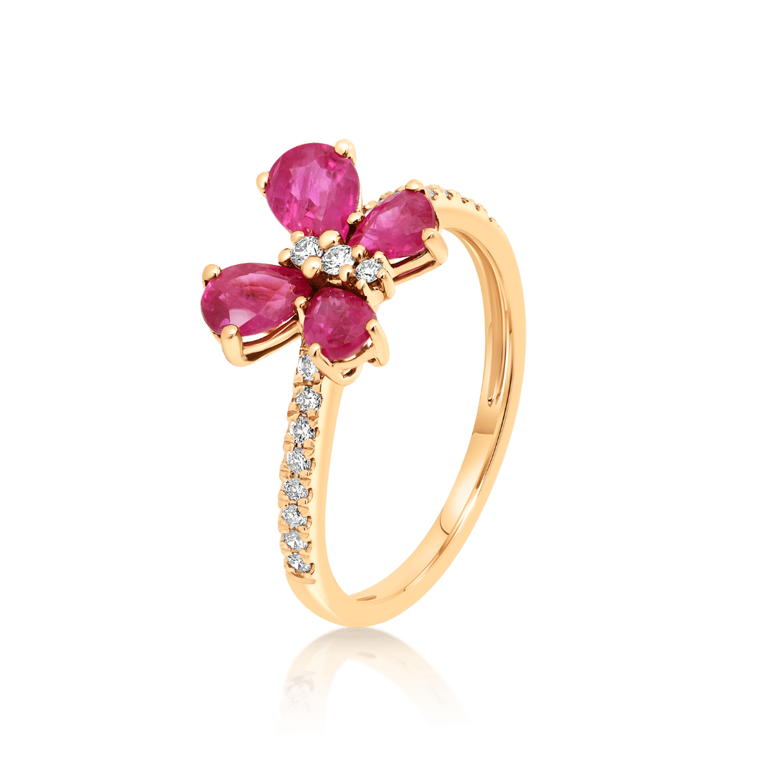 Inel din aur roz de 18K, cu 19 Diamante Round Brilliant și 4 Rubine.