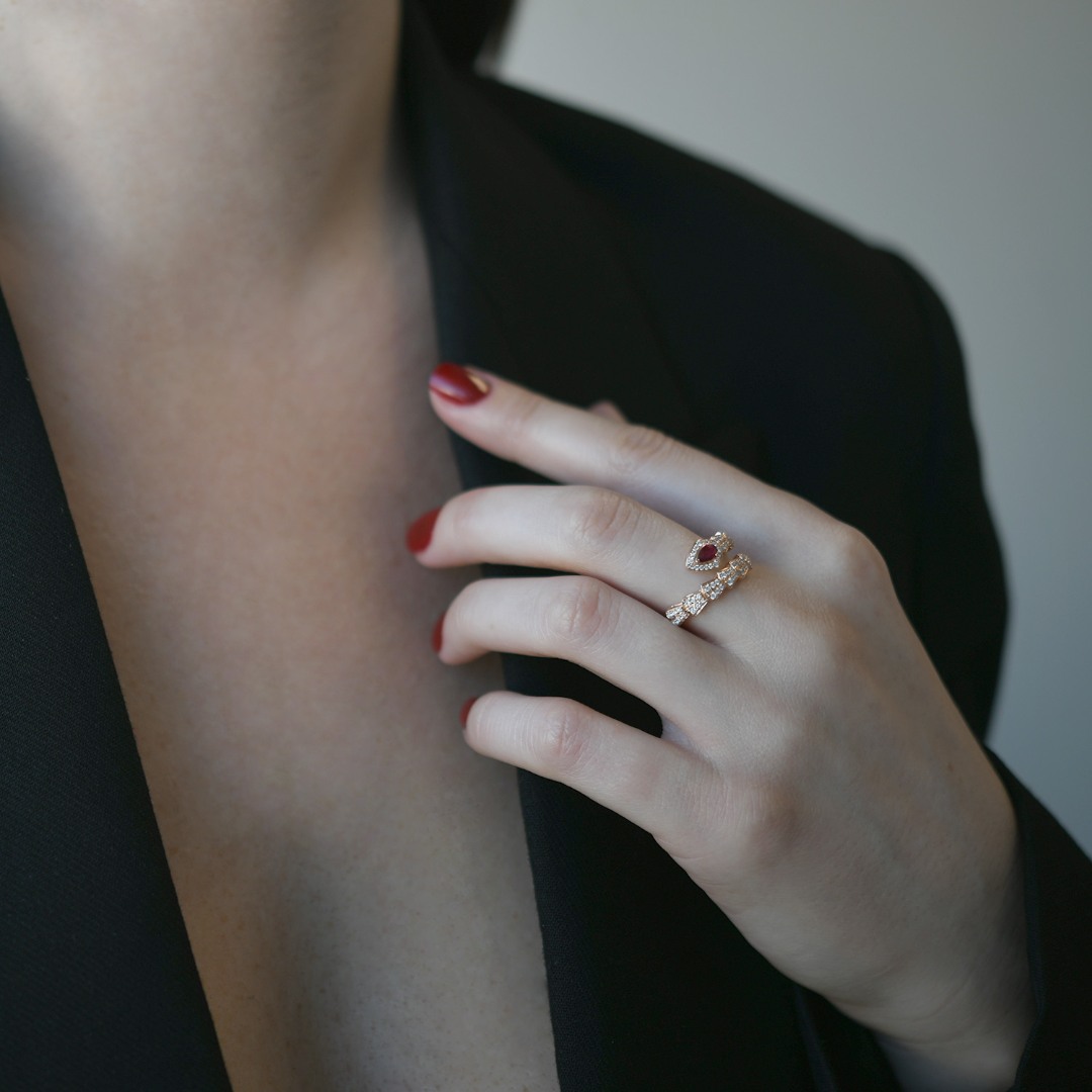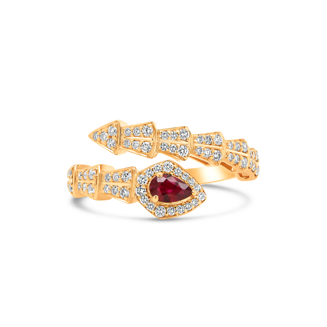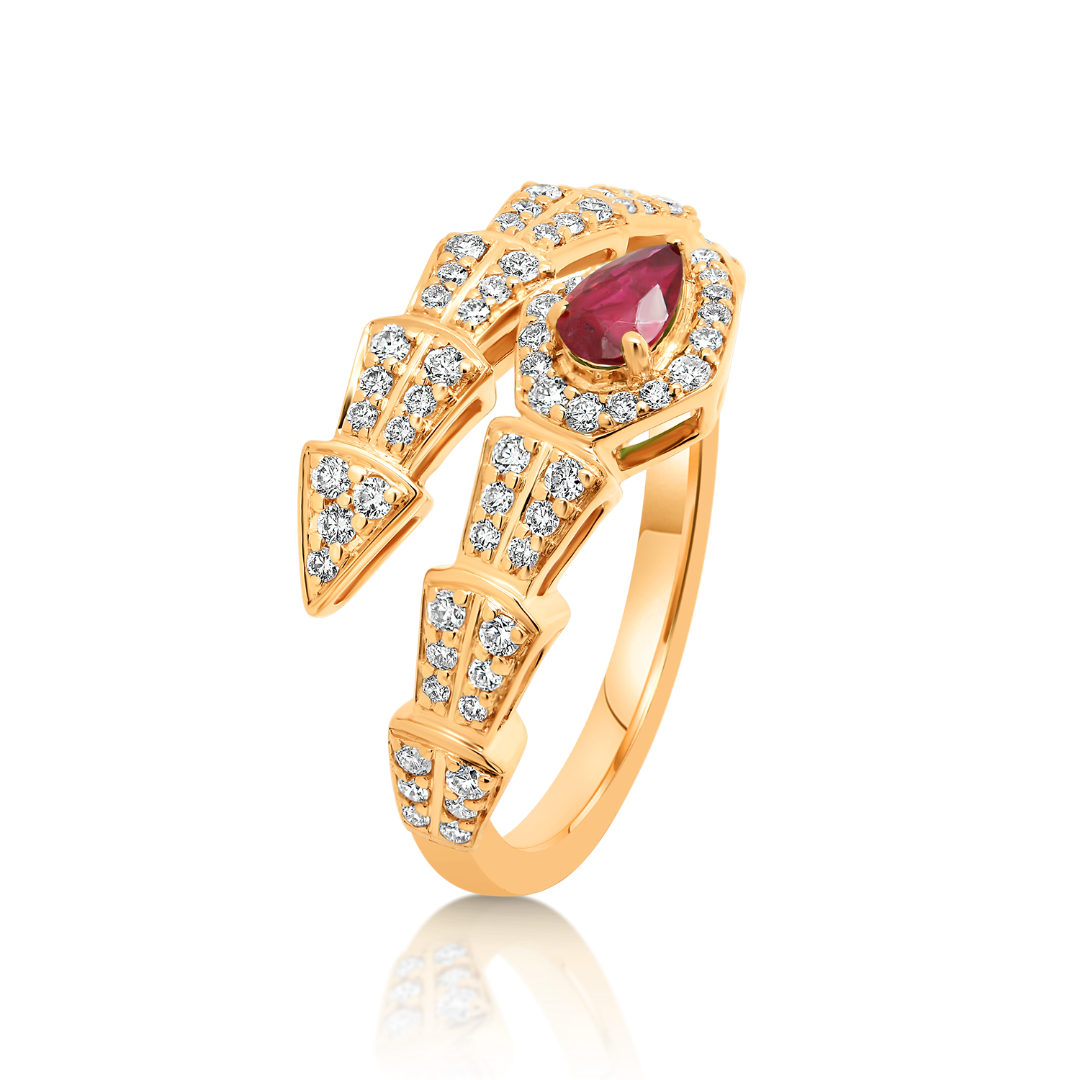 Inel din aur roz de 18K încrustat cu un Rubin de 0.23ct și 69 de Diamante Brilliant cut de 0.38ct.