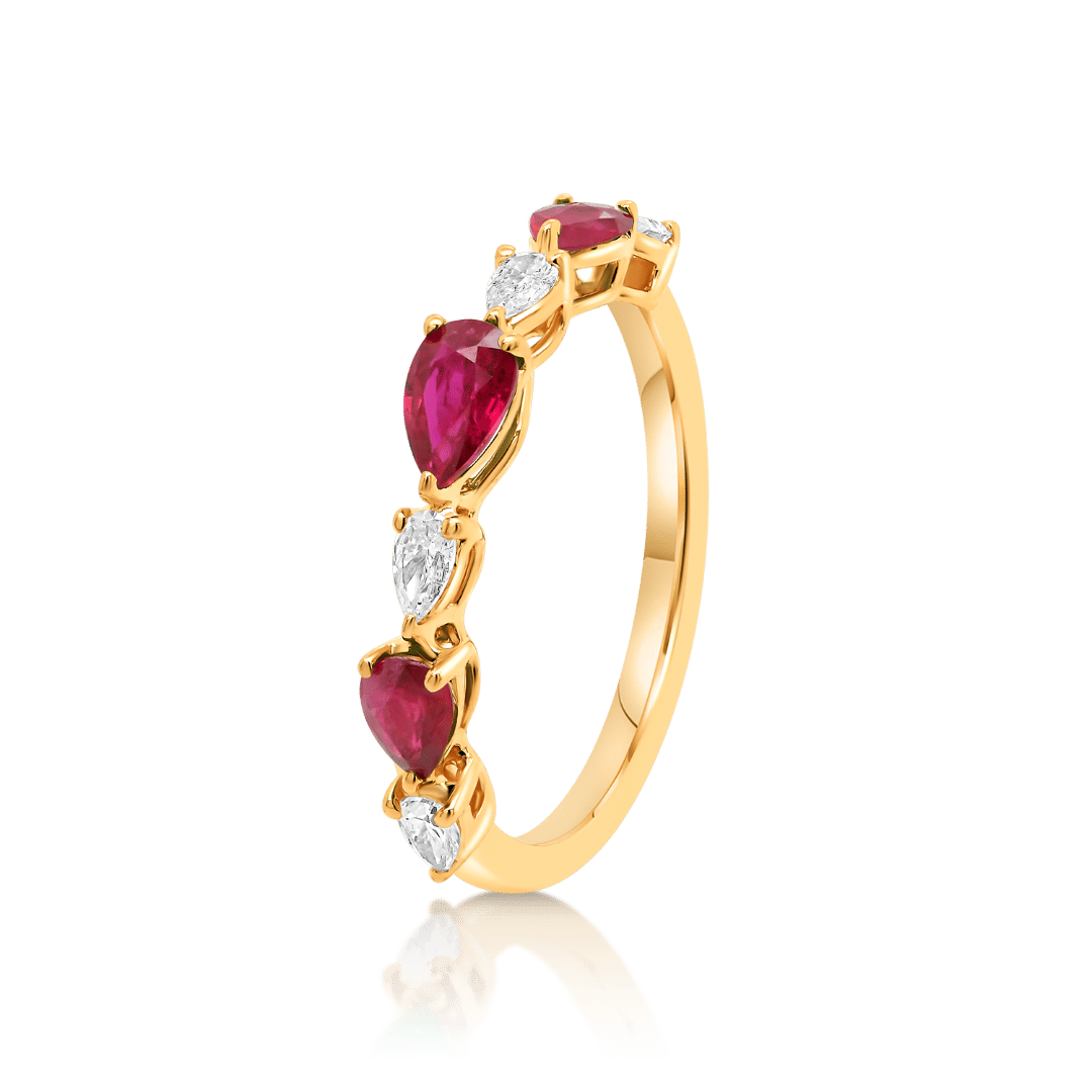Inel din aur roz de 18K cu Rubine și Diamante naturale.
