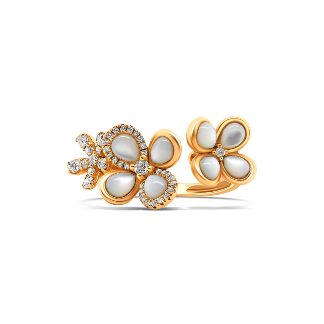 Inel din aur roz de 18K cu Sidef și Diamante naturale Round Brilliant de 0.32ct.