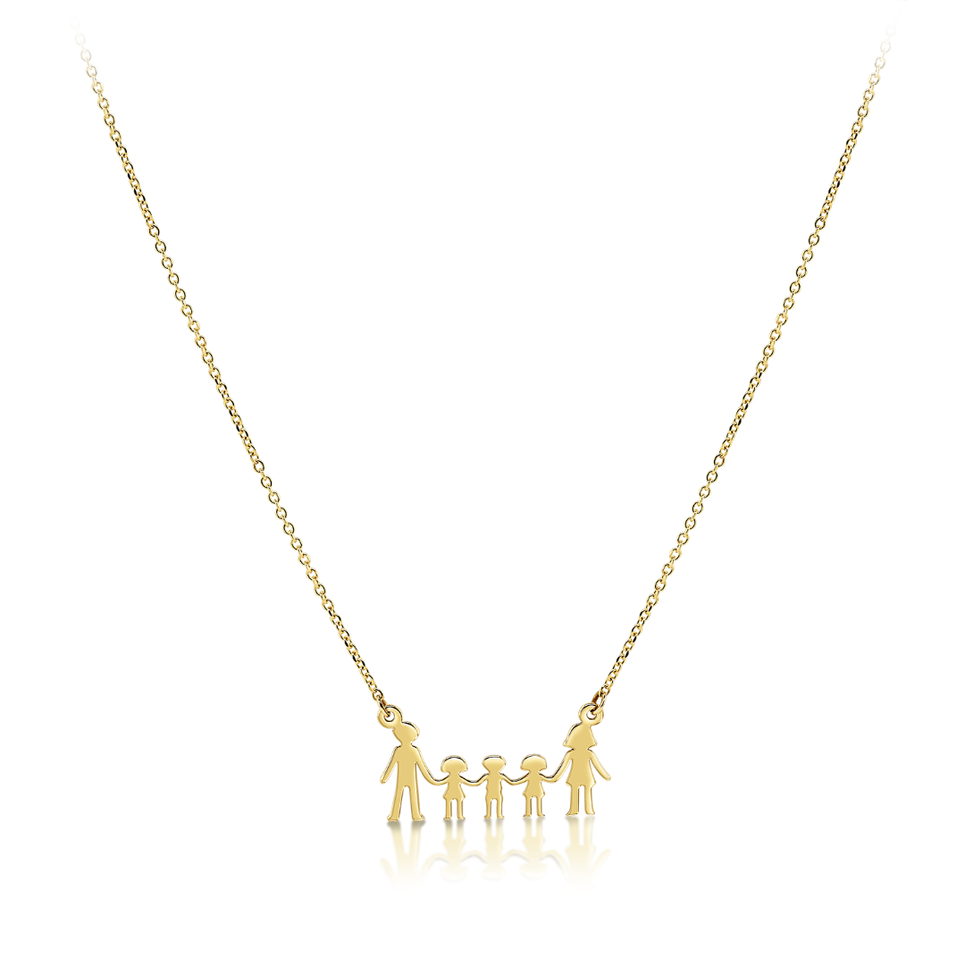 Lanț Family din aur galben de 14K cu două fete și un băiat.
