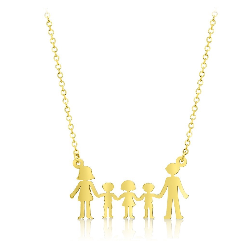 Lanț Family din aur galben de 14K cu doi băieți și o fată.