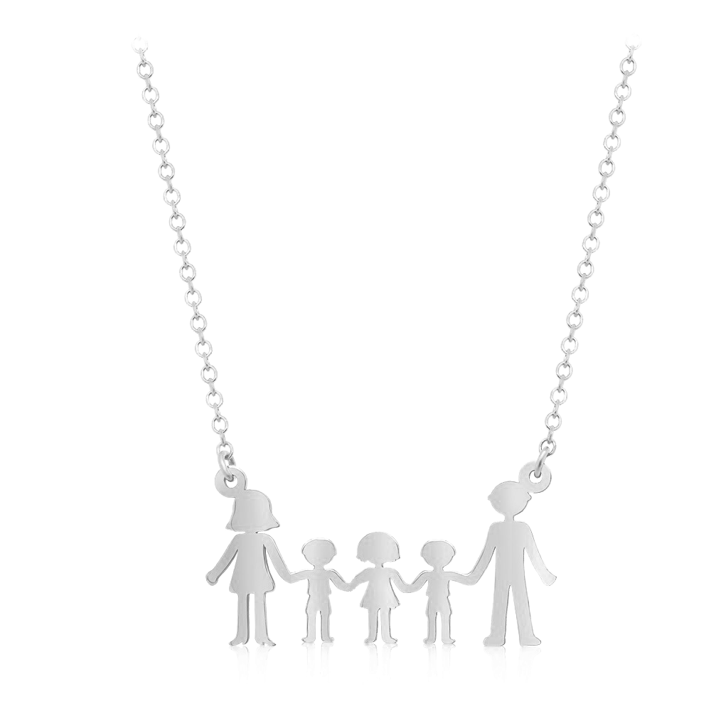 Lanț Family din aur alb de 14K cu doi băieți și o fată.