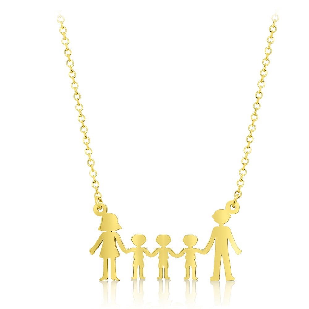 Lanț Family din aur galben de 14K cu pandantiv cu trei băieți.