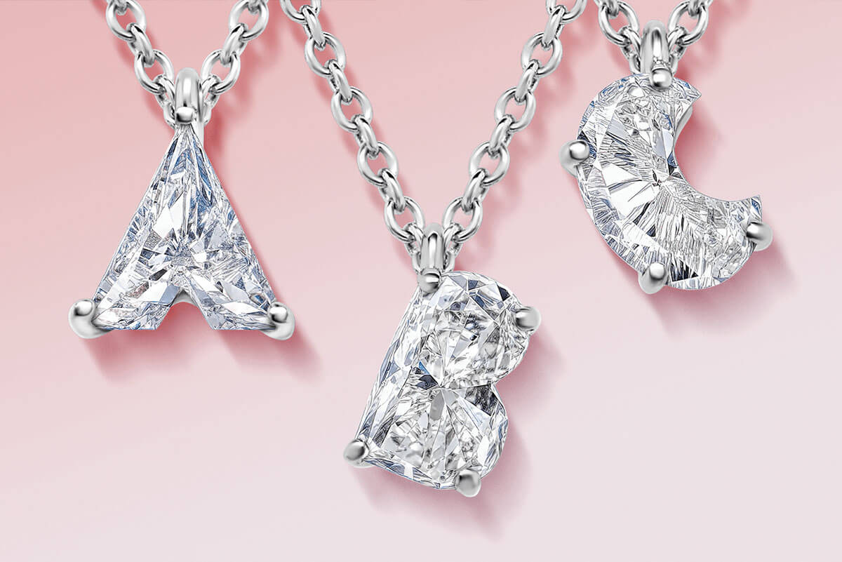 Say it with a Diamond! Descoperă o colecție unică de coliere cu pandantive litere, fiecare realizat dintr-un singur diamant – un strop de infinit, tăiat sub forma unui simbol prețios.