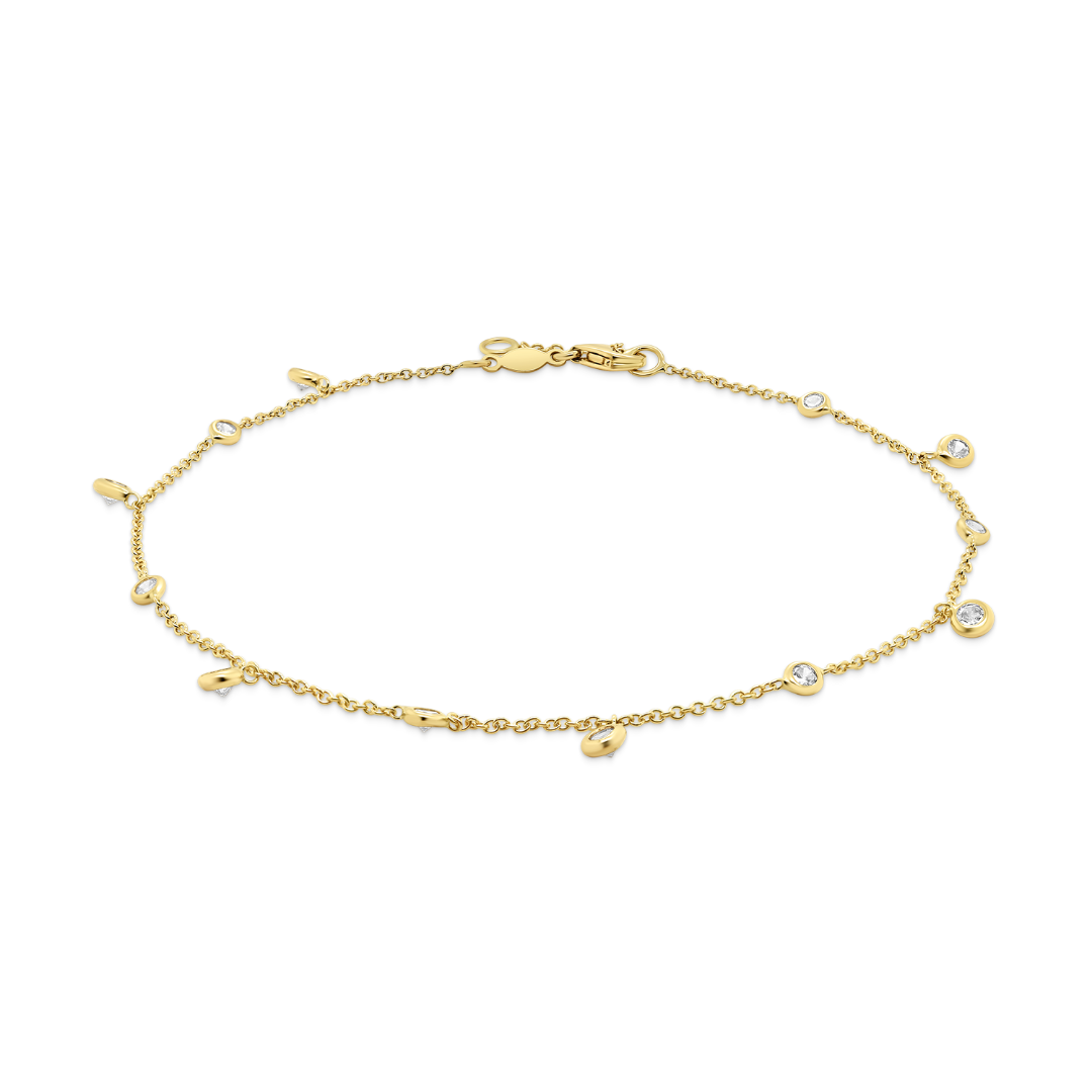 Brățară de picior din aur galben de 14K cu pietre cubic zirconia.