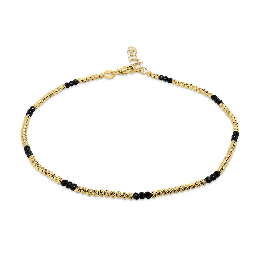 Brățară de picior din aur galben de 14K cu biluțe negre.
