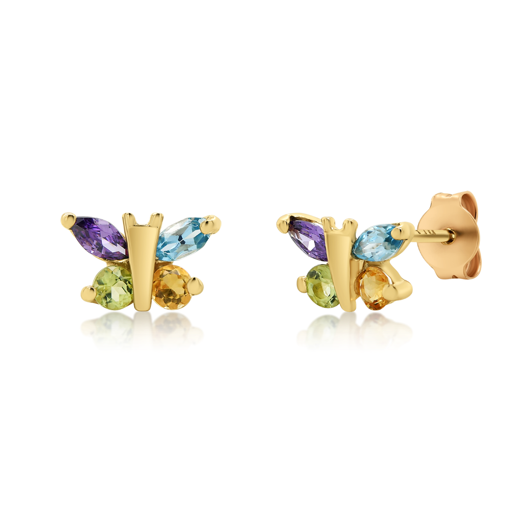 Cercei din aur galben de 14K cu Citrin, Peridot, Ametist și Blue Topaz