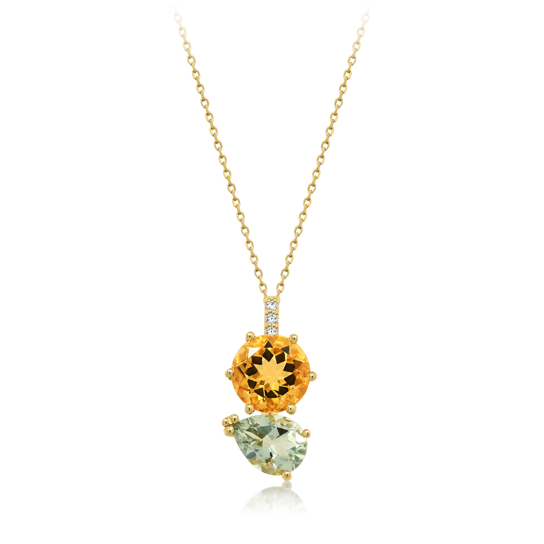Colier din aur galben de 14K, cu Ametist verde și Citrin