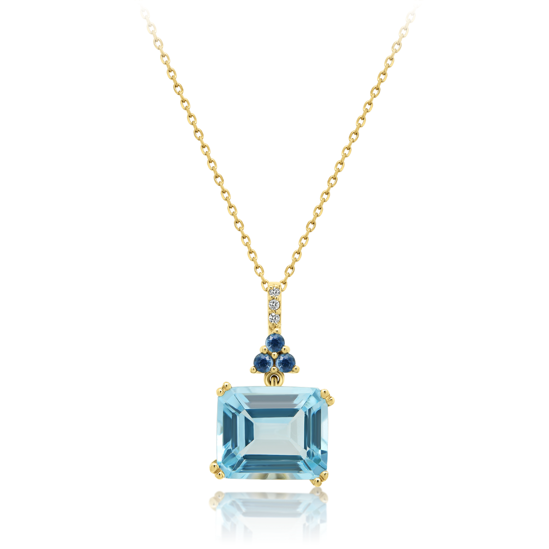 Lanț din aur galben de 14K și pandantiv cu Safire și Blue Topaz