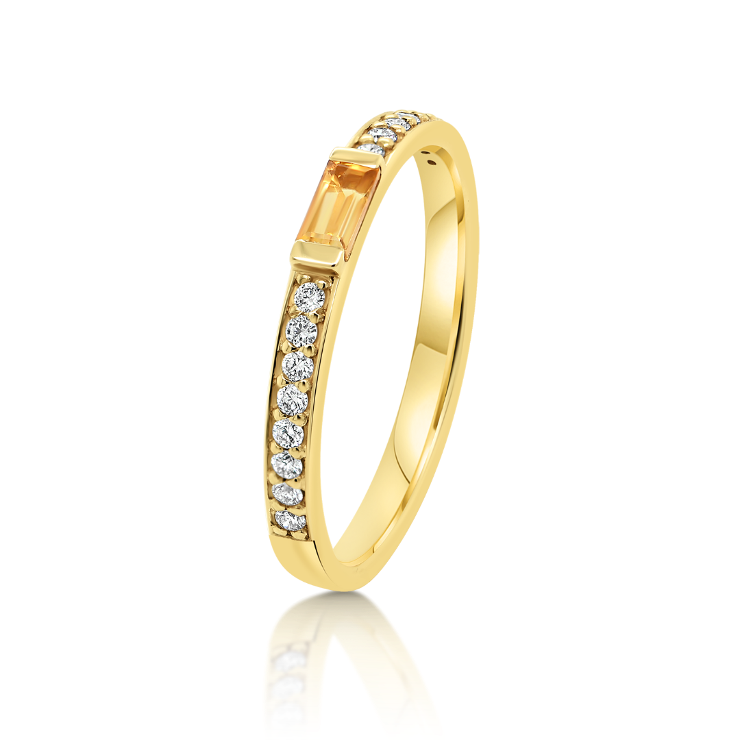Inel din aur galben de 18K, cu 16 Diamante naturale și Citrin.