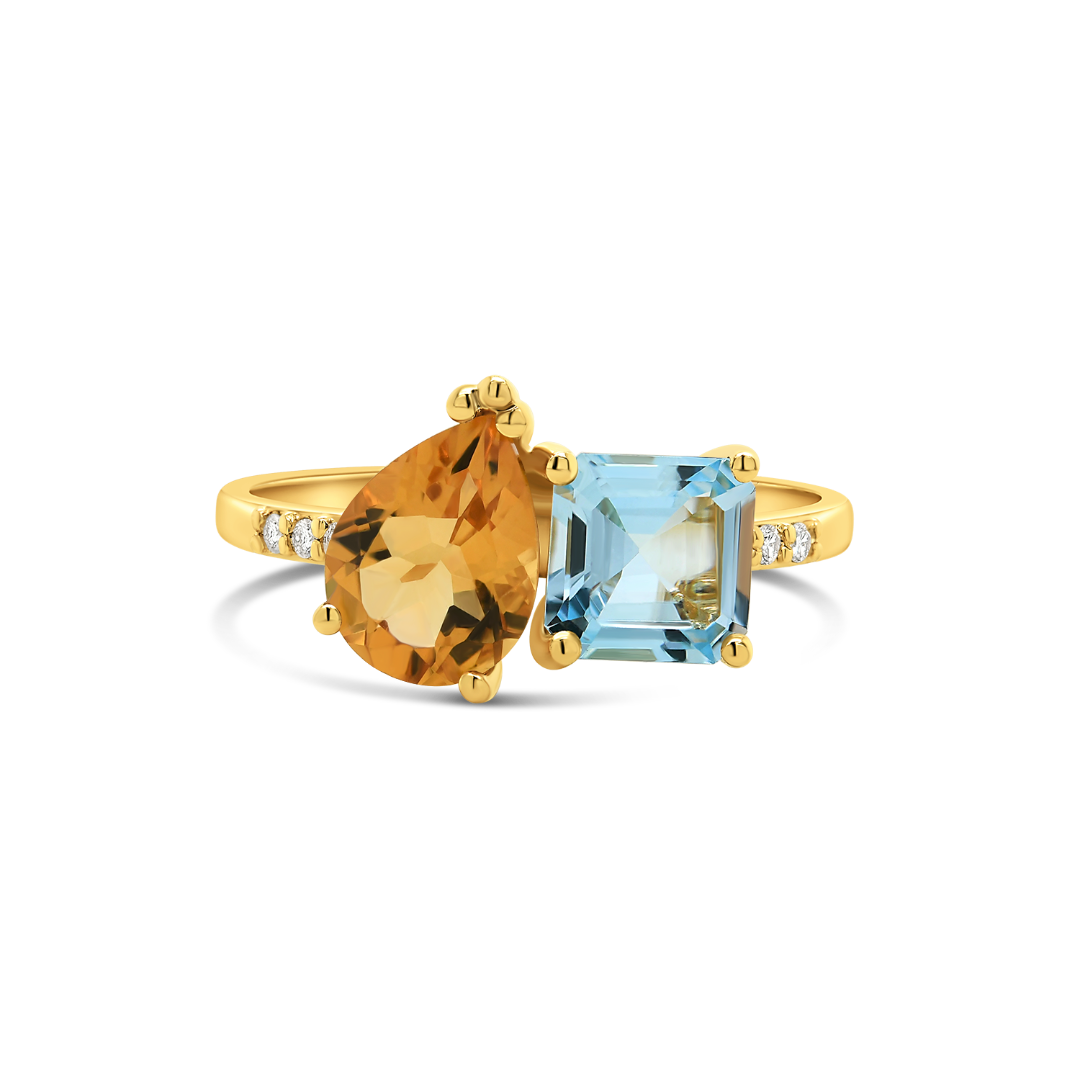 Inel din aur galben de 18K cu Diamante naturale, Citrin și Topaz