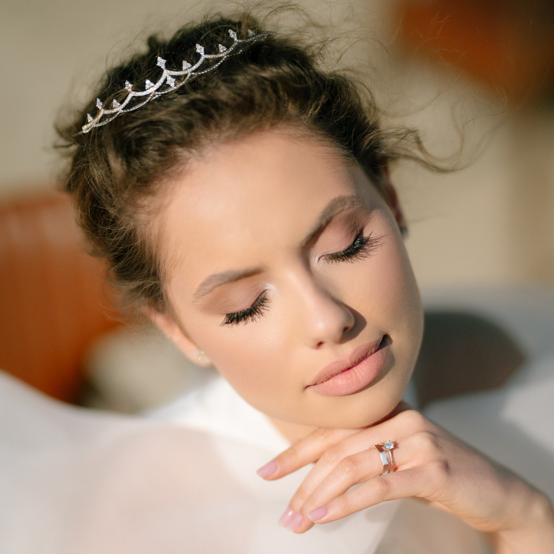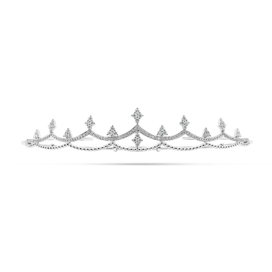 Tiară din aur alb de 18K cu Diamante naturale Round Brilliant