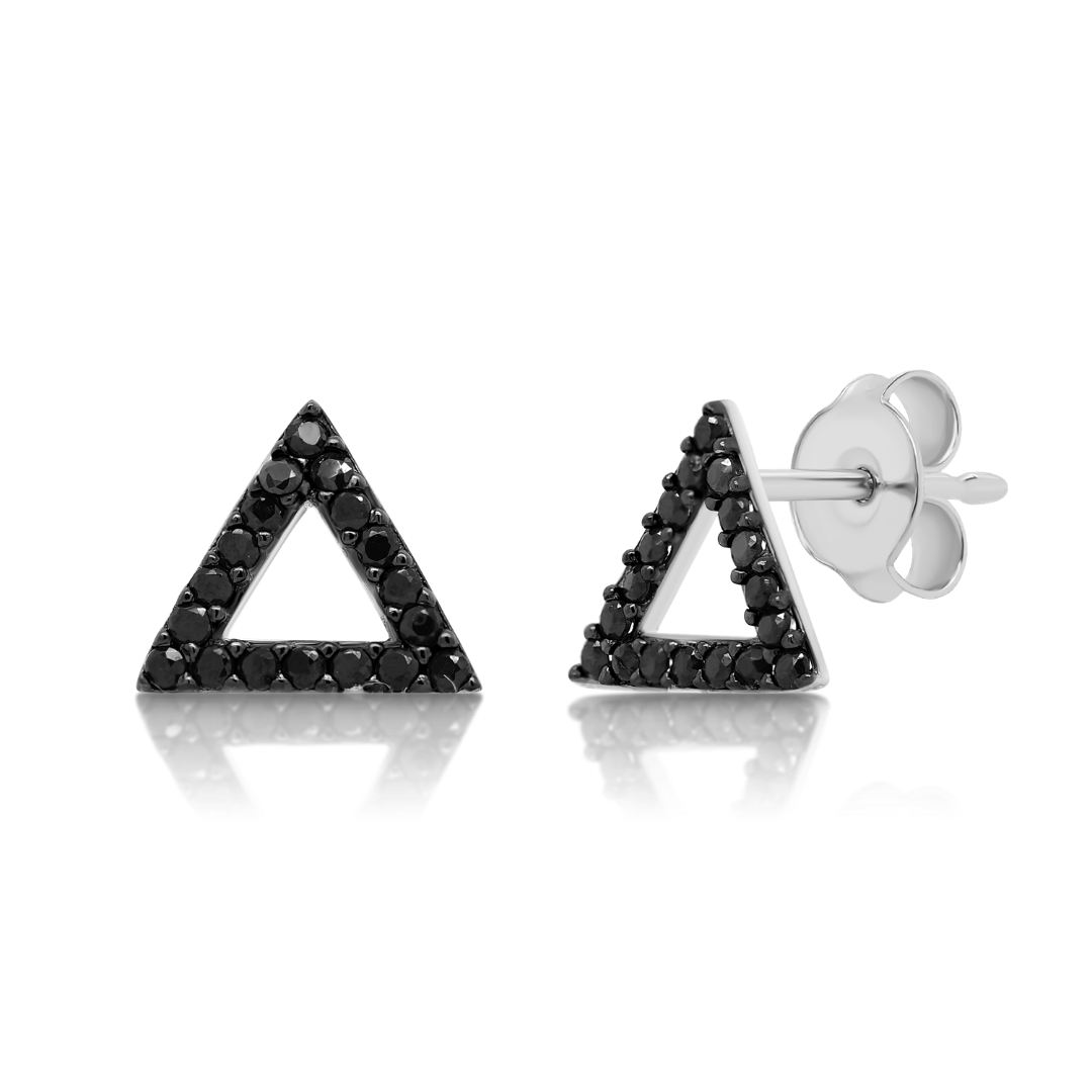 Cercei din aur alb de 14K cu pietre cubic zirconia negre.