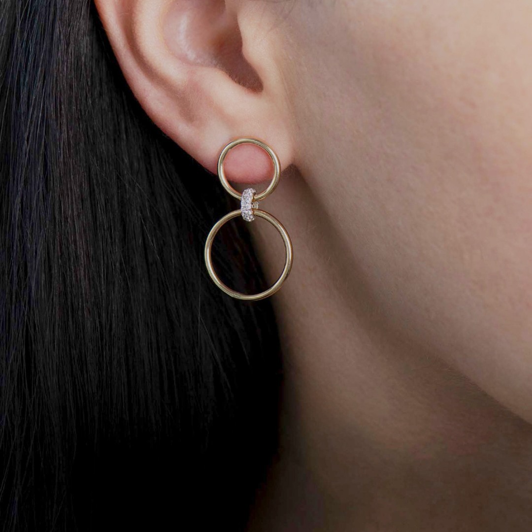 Cercei din aur galben de 14K cu pietre cubic zirconia.