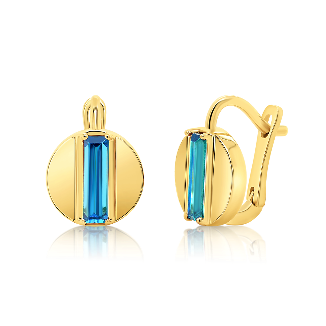 Cercei din aur galben de 14K cu pietre cubic zirconia albastre.
