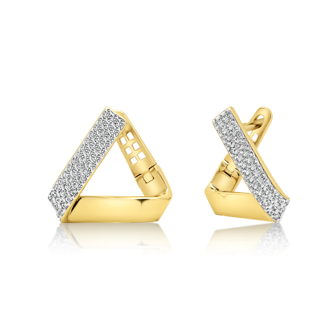 Cercei din aur galben de 14K, cu design geometric și pietre cubic zirconia.