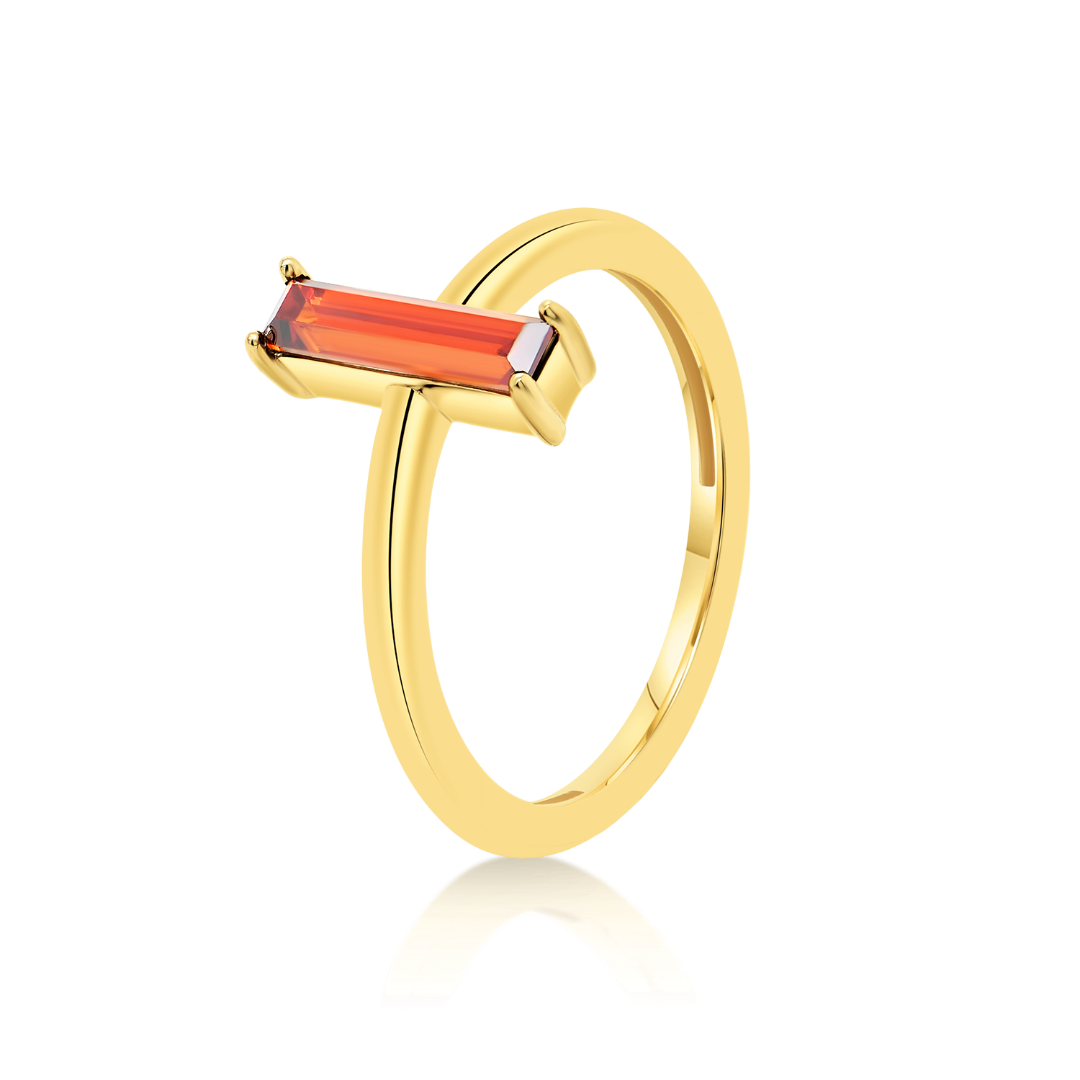 Inel din aur galben de 14K cu piatră roșie cubic zirconia.