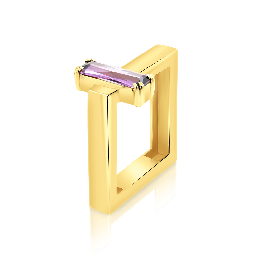 Inel din aur galben de 14K cu design geometric și piatră cubic zirconia mov.