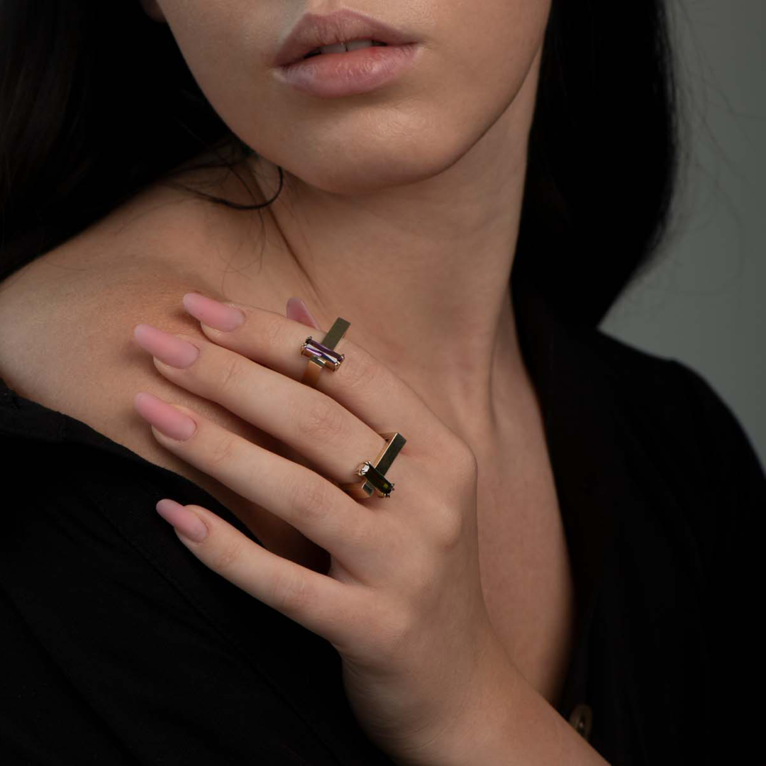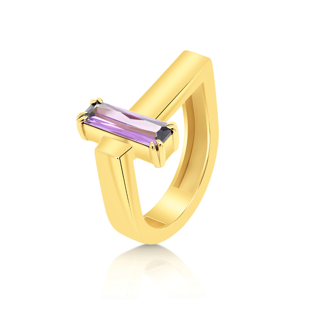 Inel din aur galben de 14K cu piatră Cubic Zirconia mov.